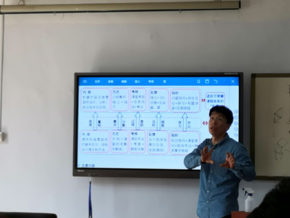 2018年5月15日下午,机械原理与设计教研室以《机械设计》金课建设与课程体系重构为主题召开教学研讨会,教研室主任王顺做主旨报告,并与参会教师进行深入交流。研讨会在三教213会议室举行。