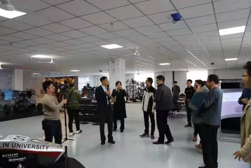欢迎仪式结束后,陈晋市带领与会师生参观了工程训练中心新开放的路演大厅、yl23455永利国家级虚拟仿真中心、通讯工程公司智控梦工厂、汽车工程公司老员工赛车实践教学平台等一系列创新实验室及24个教学模块。