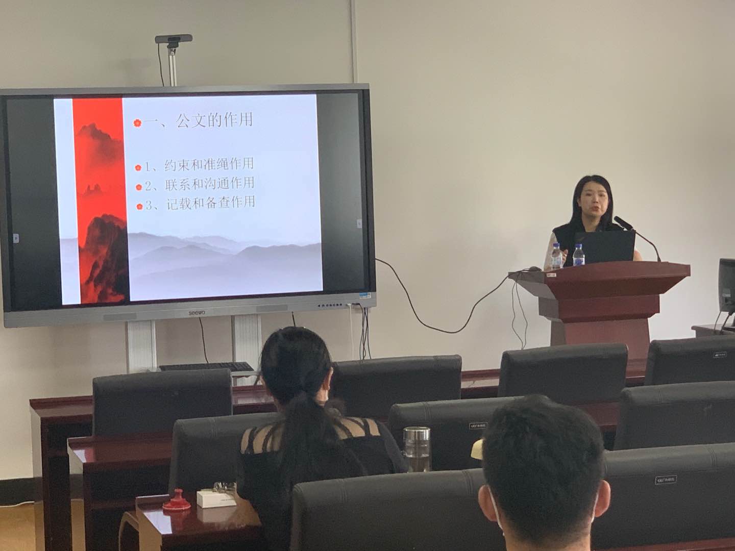 培训会上,郝玲玲老师结合行政工作的实际情况和自身丰富的工作经历,从公文作用、公文文种、行文规则、公文格式等方面,紧扣机关行政办公业务的具体要求,从公文分类、应用工作、行文技巧等方面进行了深入的讲述。还结合不同的案例分析,针对日常公文写作的注意事项进行了更细致的讲解。郝玲玲老师最后同参会人员进行了经验交流,让参会的同志们受益匪浅。