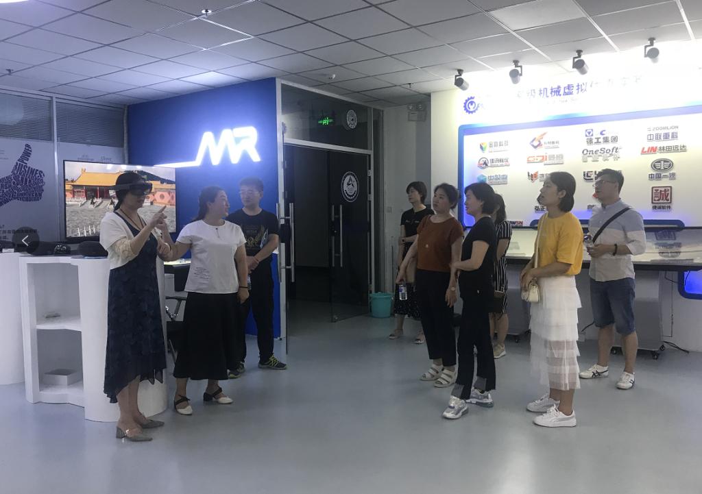与会人员参观了虚拟仿真实验中心的智慧教室和AR/VR/MR实践教学区域,中心副主任王志琼老师全程陪同并做讲解。