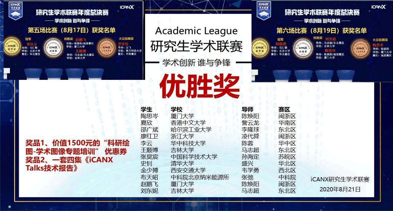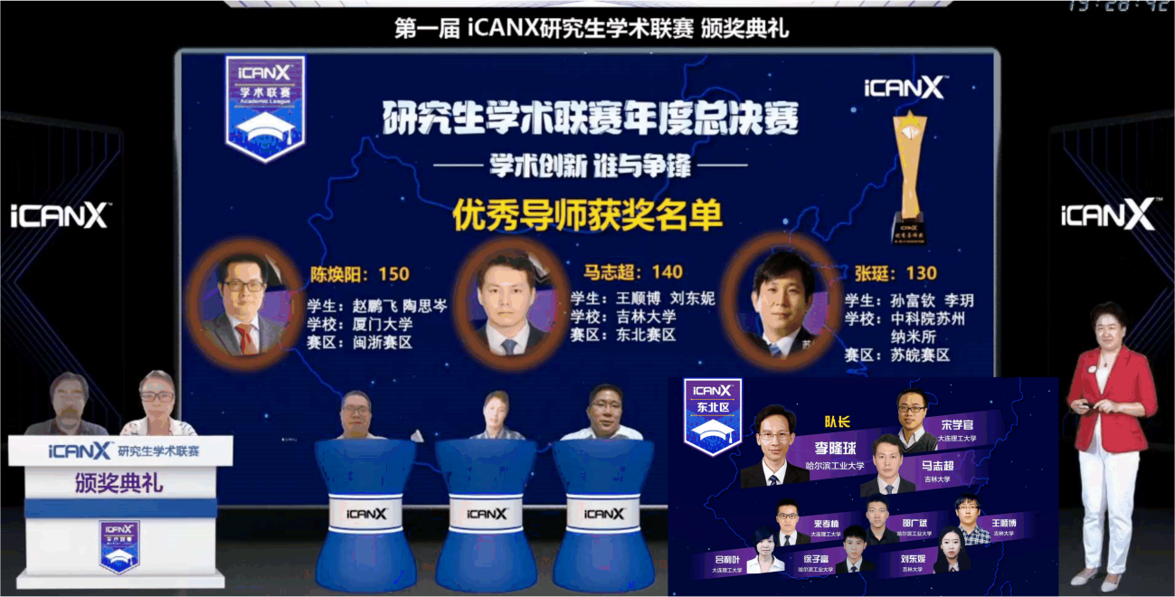 2020年8月21日, 首届iCANX学术联赛年度总决赛落下帷幕, 代表东北赛区参赛的公司刘东妮、王顺博两位博士研究生,双双获得优胜奖,东北赛区指导教师马志超教授获优秀导师奖。