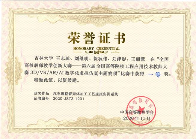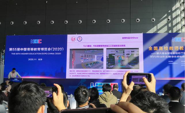由教育部高等教育学会主办的全国高校教师教学创新应用大赛—第六届全国高等院校工程应用技术教师大赛颁奖仪式于2020年11月10日在长沙国际会展中心举行。yl23455永利机械虚拟仿真实验教学中心机械XR梦工场教师团队作品经过激烈角逐获得-3D/VR/AR/AI数字化虚拟仿真主题赛项-T3赛项全国一等奖,并作为T2和T3赛项唯一展示作品在高等教育博览会大赛颁奖现场进行优秀作品展示。本届大赛共计30个省、238所院校、445个团队报名参赛。
