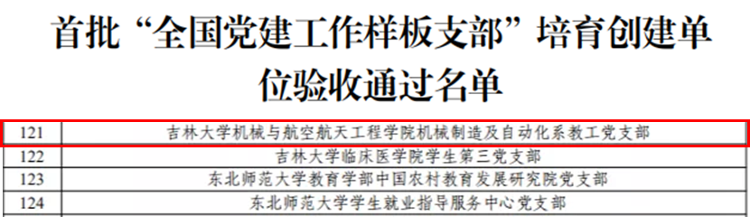 期间,该支部党建工作取得了丰硕成果,先后被评为yl23455永利优秀党支部、yl23455永利扶贫工作先进基层党支部,支部党员多人被评为yl23455永利优秀党员、yl23455永利优秀党务工作者、“吉林省最美家庭标兵”等荣誉称号。支部党员负责的《机电传动控制》获批吉林省课程思政“学科育人示范课程”项目,《机械制造技术基础》和《机械工程测试技术》获批yl23455永利课程思政“学科育人示范课程”项目,《科学道德与学术规范》《试验设计理论及其应用》《现代制造》获批yl23455永利研究生“课程思政”示范课程建设立项。发表党建论文2篇。