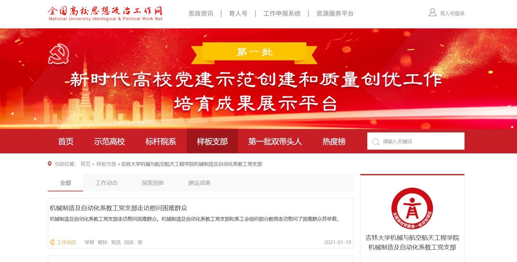2021年1月,公司机械制造及自动化系教工党支部顺利通过首批“全国党建工作样板支部”培育创建验收。