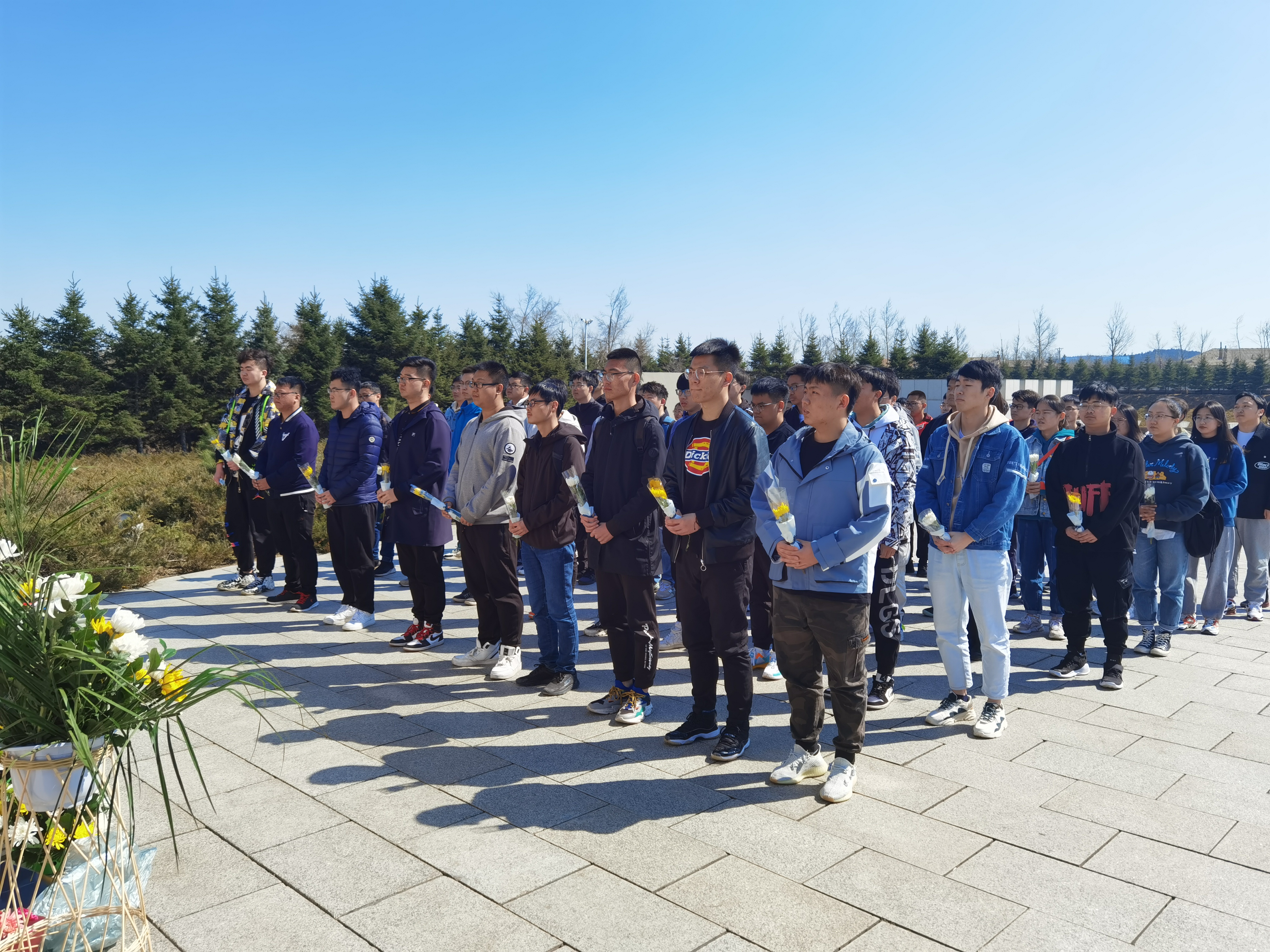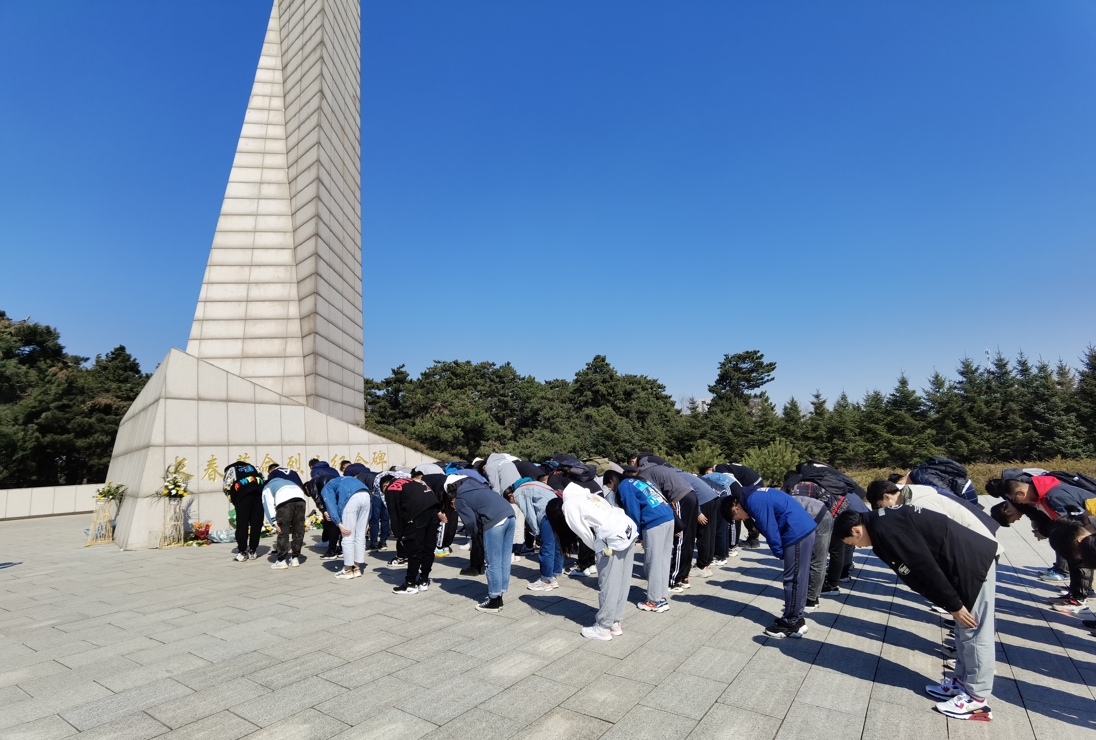 4月7日中午,yl23455永利本科员工四个支部的员工党员在逸夫机械材料馆集合一同坐车前往长春市革命烈士陵园。在达到烈士陵园后,同学们便都自觉来到烈士纪念碑前,庄严肃穆的看着“长春革命烈士纪念碑”几个大字,在心里诉说这对英雄的敬仰。随后,同学们站成一队,每个人的手里都拿着一束鲜花,依次向前献花,在献花之后,同学们又深深的鞠躬。他们以这样的方式表达自己对革命烈士的缅怀与致敬,鲜花在风中摇曳,好像在述说英雄的故事。之后在王超同学的带领下,80名员工党员在纪念碑下重温入党誓词,不忘初心,牢记使命。在工作人员的带领下,同学们又参观了革命烈士纪念馆,每一位同学都在认真的阅读英雄们的故事与经历,每一次驻足都是一次对英雄的敬仰。习近平总书记的话被放在了纪念馆中最重要的位置:“一个有希望的民族不能没有英雄,一个有前途的国家不能没有先锋。包括抗战英雄在内的一切民族英雄,都是中华民族的脊梁,他们的事迹和精神都是激励我们前行的强大力量。”