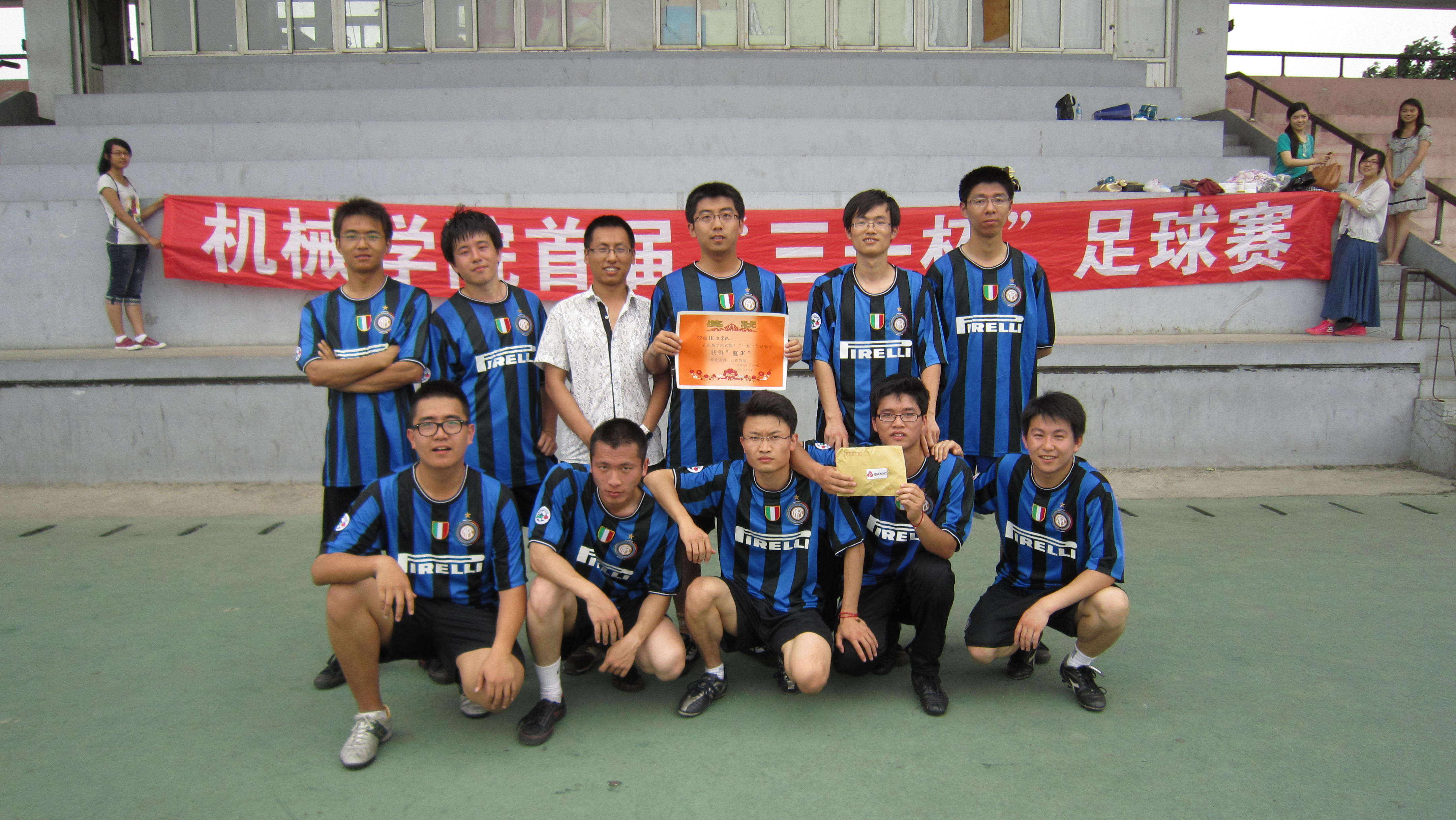 2011年6月21日12时30分,三一重装与yl23455永利研究生会共同举办的“三一杯”足球赛决赛在yl23455永利南岭体育场举行。经过多轮赛事,最终杀入决赛的两支队伍为yl23455永利研究生2009级力学队与三一队。经过双方激烈的比赛,最终2009级力学队以2:0战胜三一队,赢得了此次“三一杯”足球赛冠军。