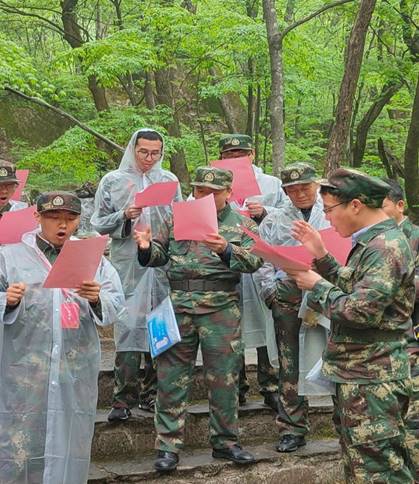 5月15日,全体学员在杨靖宇干部公司宣誓广场参加了“重走抗联路”出征仪式。面对鲜红的党旗,寇尊权教授带领全体学员庄严宣誓,重温入党誓词。通化市委党校杨博副董事长为队伍授旗,寇教授宣布出征口令。此次红色之旅的第一个学习地点为集安市鸭绿江国境铁路大桥,在伪满时期日伪军奴役中朝劳工修建的炮楼和口岸大桥旁,通化市委党校佟勃萱老师现场教学,深情讲述了600多名集安将士奋勇杀敌的光辉事迹。第二个学习地点为集安市五女峰,佟老师带领学员徒步抗联小路,学员们沿着崎岖的“抗联路”,踏着抗联战士的足迹,体会革命先烈征战露宿的艰辛。在行进途中,班主任老师带领学员们进行了学唱东北抗日联军“露营之歌”和抗联诗歌朗诵比赛活动。学员们通过歌词感受抗联将士的艰苦岁月,感悟抗联将士的心灵支柱。全体学员精神饱满,斗志昂扬,引吭高歌。
