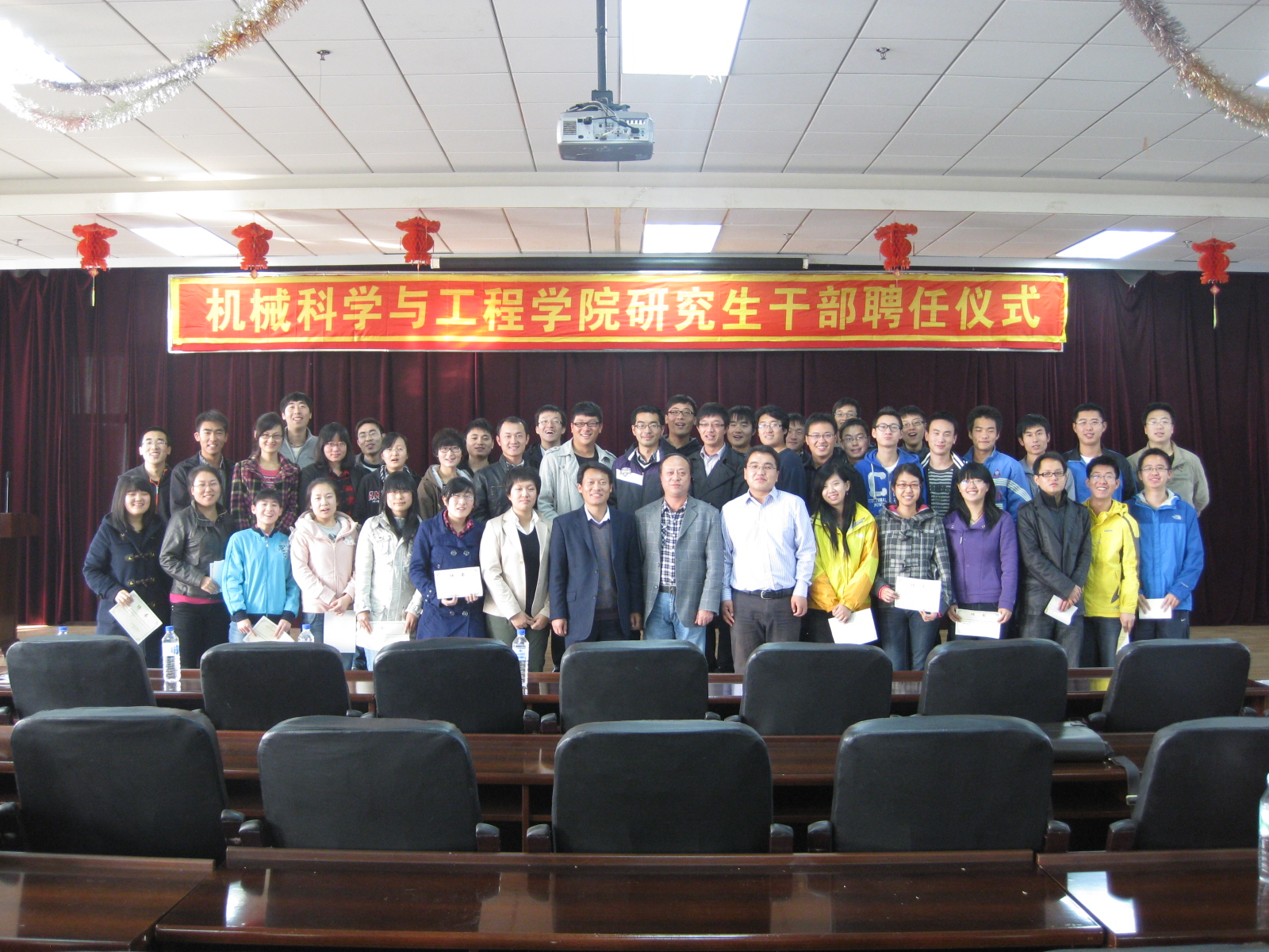 2011年10月19日13:30分,机械科学与工程公司2011届研究生干部聘任仪式在机械馆八楼报告厅隆重举行。出席此次会议的有公司党委副书记郑福胜老师、研究生办主任隋忠睿老师、研究生办巴特老师、徐媛媛老师以及2010级、2011级研究生干部全体成员。此次会议由2011级研究生团委副书记寇莹同学主持。
