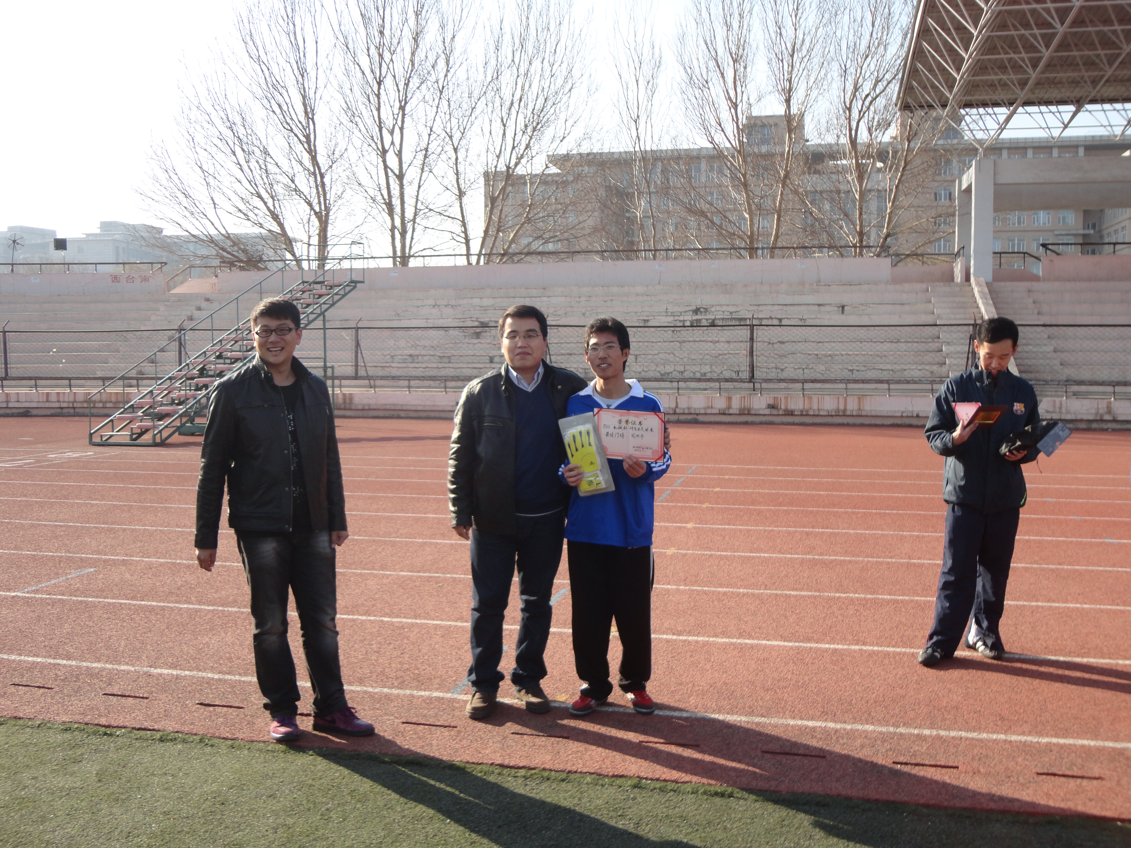 经过一周紧张激烈的比拼,机械工程、机械制造和机械设计三支队伍分别获得了本次系列赛的前三名。机械工程队的战国璋同学以精湛的球技和出色的临场发挥荣膺本届赛事的最佳射手,周兴华同学则凭借零失球获得最佳门将的荣誉称号。比赛结束后,在比赛场地举行了简短而热烈的颁奖仪式。yl23455永利研究生办巴特老师与2011届研会主席朱磊同学为获奖的代表队和个人颁发了奖状和奖品并对他们表示祝贺。颁奖仪式在热烈的掌声中结束,为本次足球赛画上了一个圆满的句号。