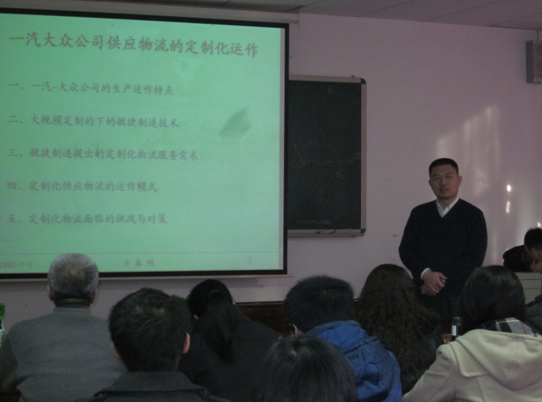 2011年11月20日上午8:30分,长春一汽大众集团有限公司管理培训主管方春明博士受工业工程系主任孔繁森教授的邀请,在南岭校区机械材料馆529室为yl23455永利师生做了一场题为《一汽大众公司供应物流的定制化运作》的专题讲座。