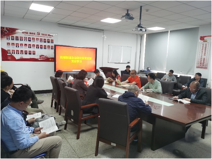 机械制造及自动化系教工党支部坚持线下线上结合、学习研讨结合的方式,将党史学习教育引向深入,推动党史学习教学常态化、多元化、全员化。2021年5月12日下午,党支部继续开展党史著作“读书会”活动,公司教学委员会主任王昕教授、入党积极分子王荣奇博士分别领学部分章节内容。