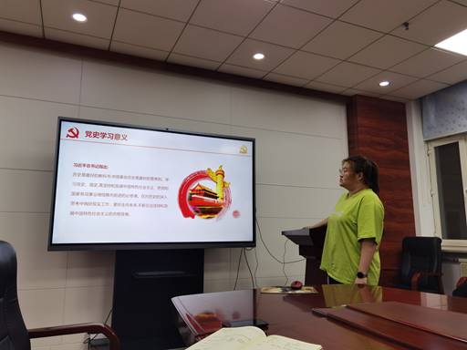 张震之同志结合“四史”,向与会党员同志介绍了关于党史学习的重大意义,着重强调党在各个历史时期取得的重大历史成就与涌现的先锋模范,号召支部全体党员把党史学习作为提高党性修养的重要方式,做到党史学习的主动化、常态化。