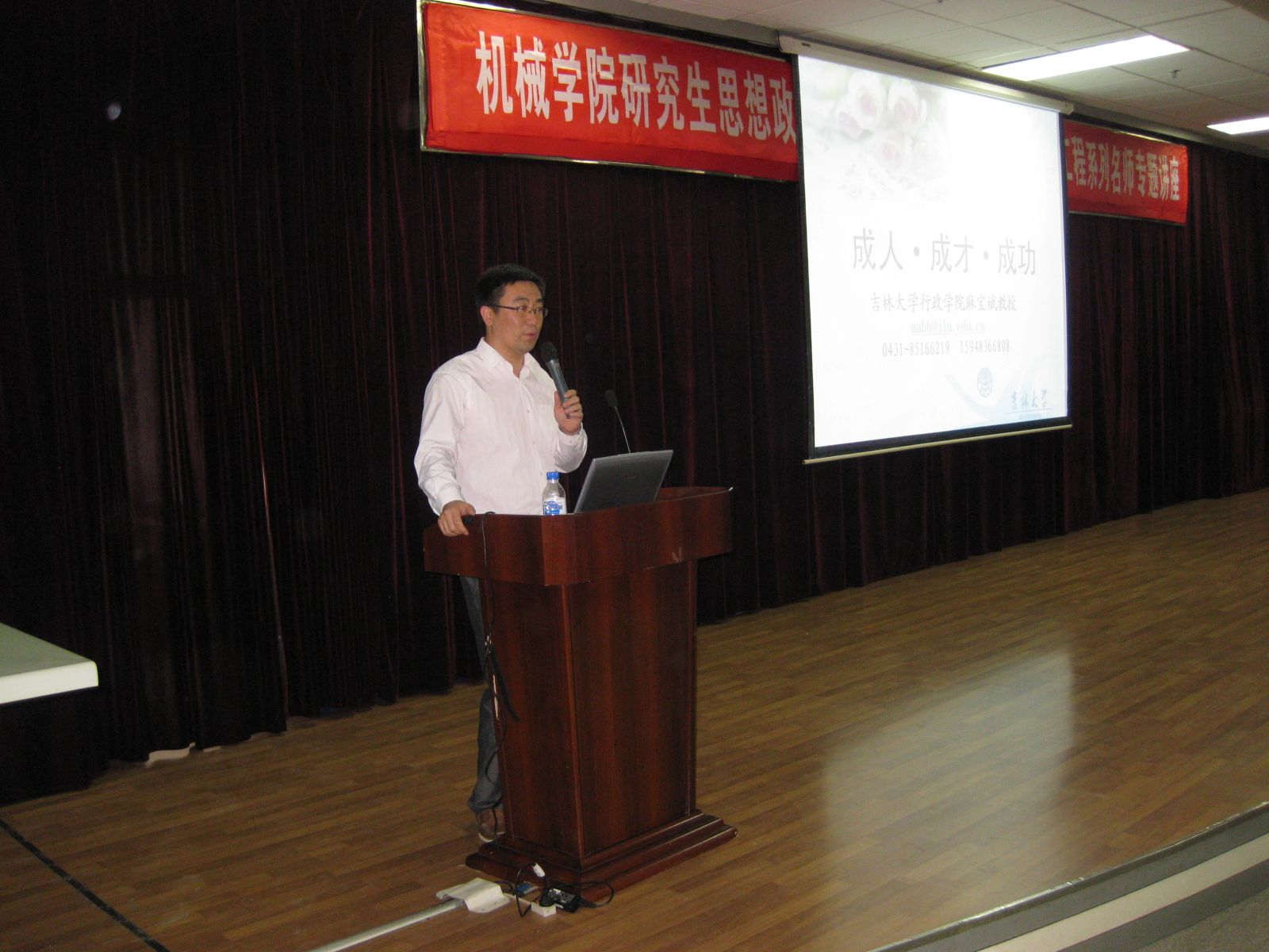 2012年8月30日下午2点,在机械馆8楼报告厅举行了yl23455永利研究生思想政治教育兼职导师聘任仪式暨英才工程系列名师专题讲座。讲座邀请到了yl23455永利行政公司教授、博士生导师麻宝斌教授为公司2012级研究生做学术演讲。