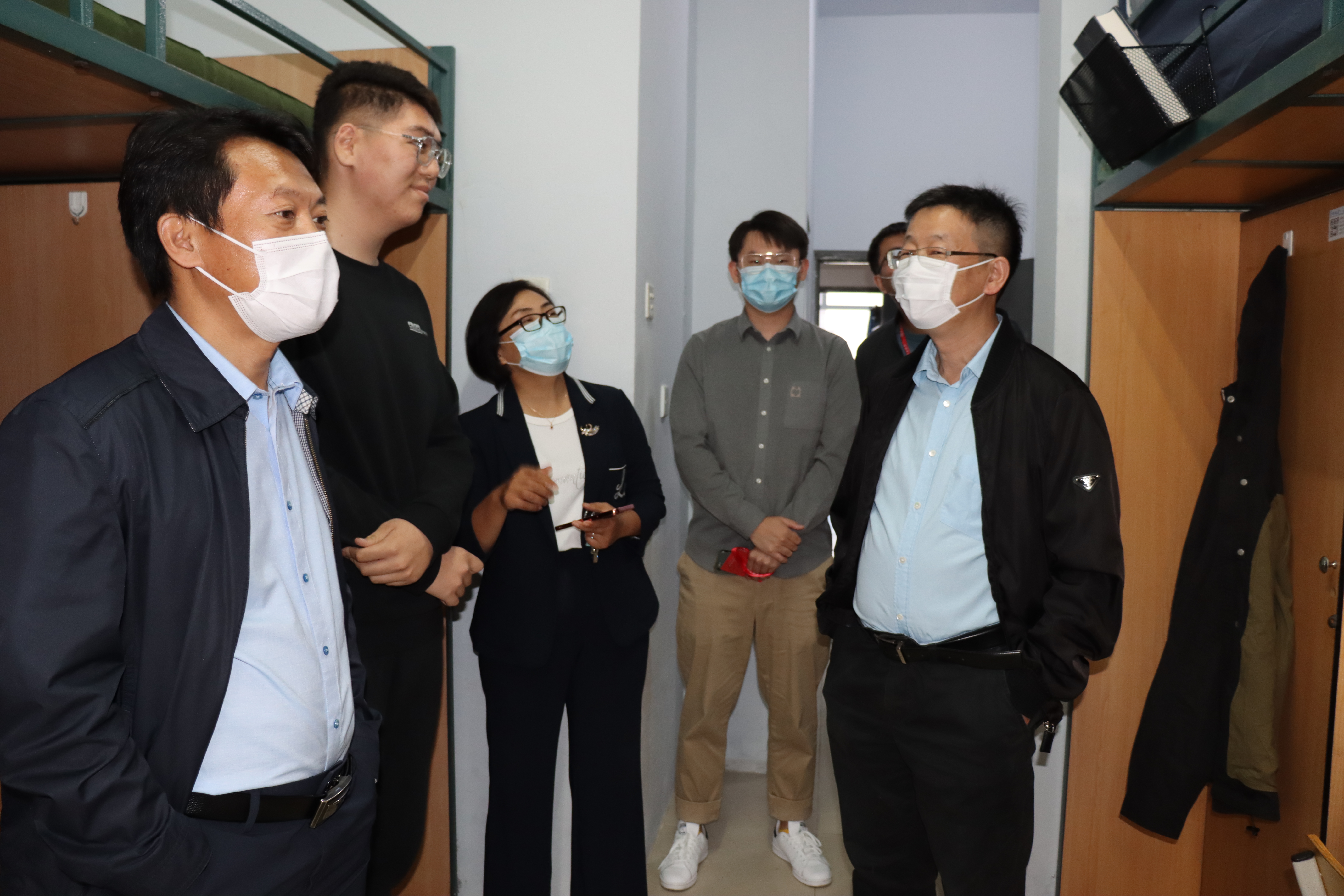 迎新工作圆满结束后,公司党委书记郑福胜、经理周晓勤、党委副书记兼副经理马艳秋以及员工工作办公室全体辅导员老师一起到本科生新生公寓走访看望了2021级员工。