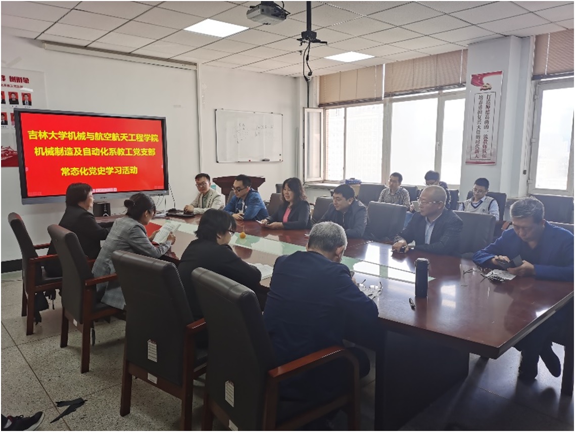 机械制造及自动化系教工党支部坚持线上线和线下相结合、学习和研讨相结合的方式,推动党史学习常态化、多元化、全员化,将党史学习引向深入。2021年9月28日,在国庆节来临之际,党支部继续开展党史著作“读书会”活动,学习活动由支部书记呼咏主持,支部党员程丽丽领读了习近平总书记在全军政治工作会议上讲话的一部分—— “古田会议奠基的我军政治工作对我军生存发展起到了决定性作用”,支部成员对此进行了学习和讨论。