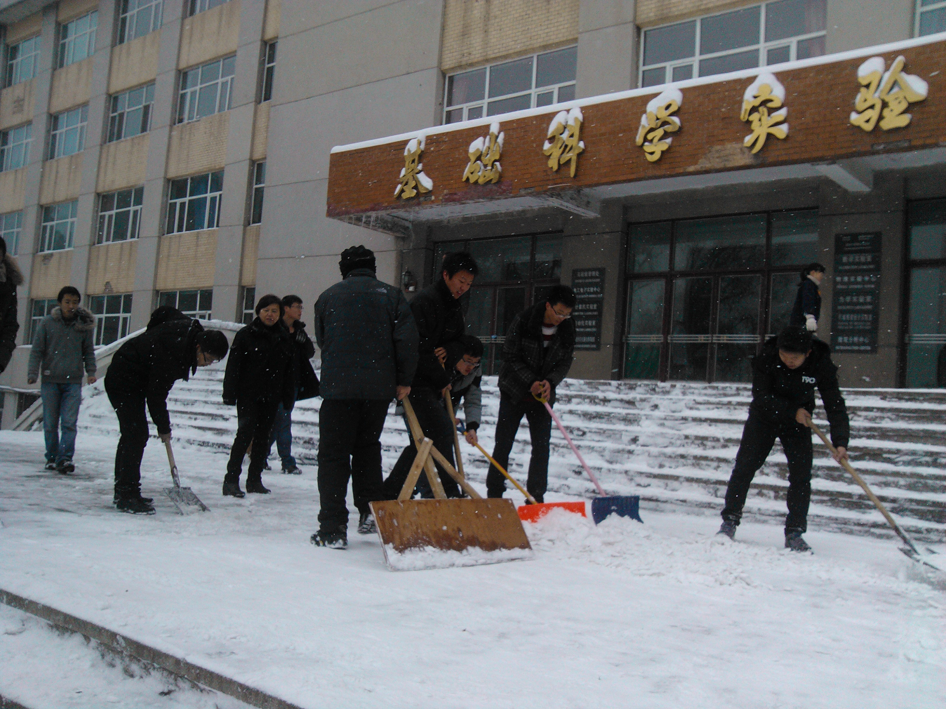 最后,徐老师对所有参与的同学表示感谢, “连日来的大雪 ,虽然净化了空气,但是也给交通和生活带来困难。非常感谢刚才在基础楼门前扫雪的同学!这是我们自己每天学习工作的必经之路,我们应该有责任和义务,为自己、为大家尽一点义务!”