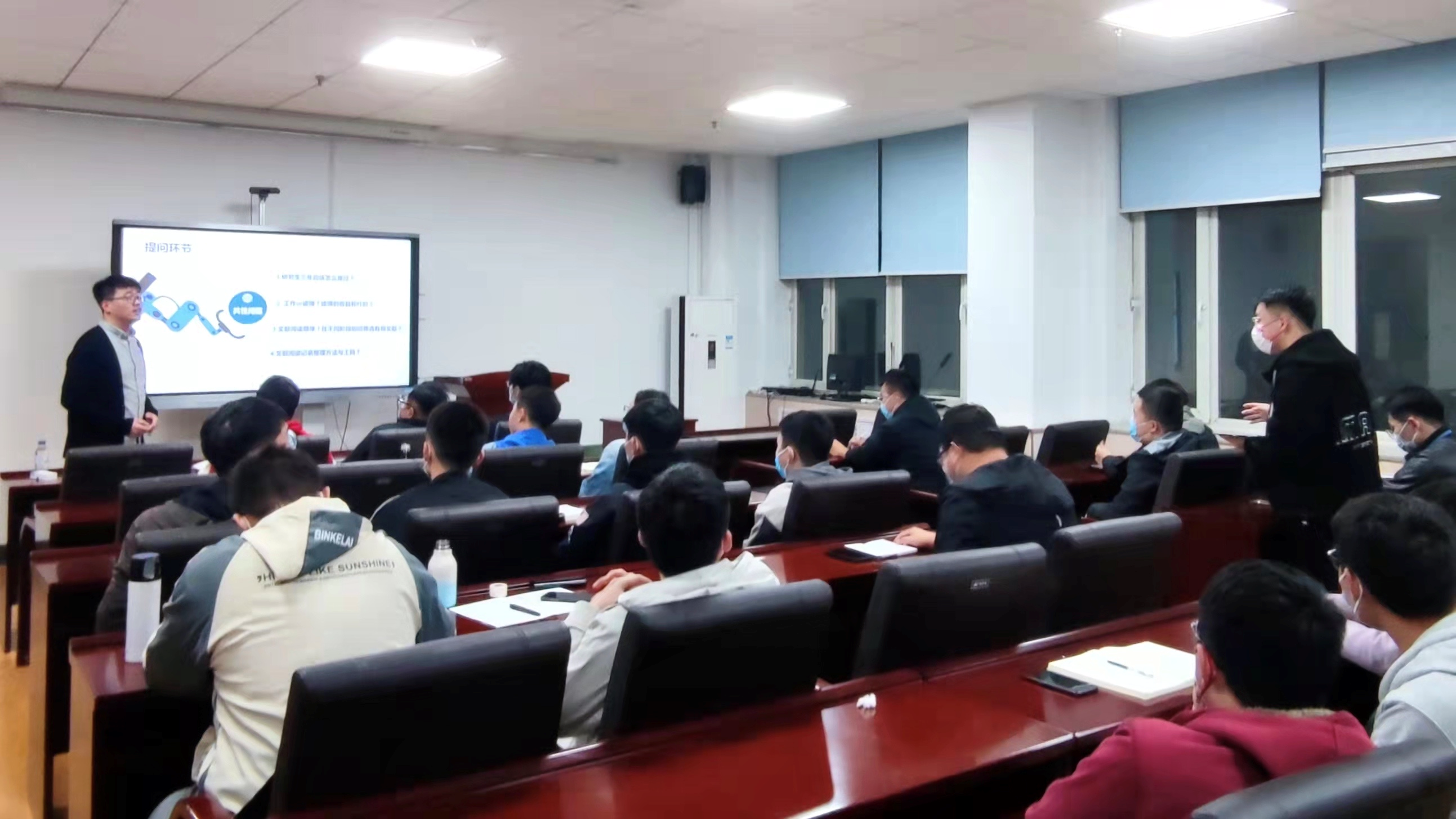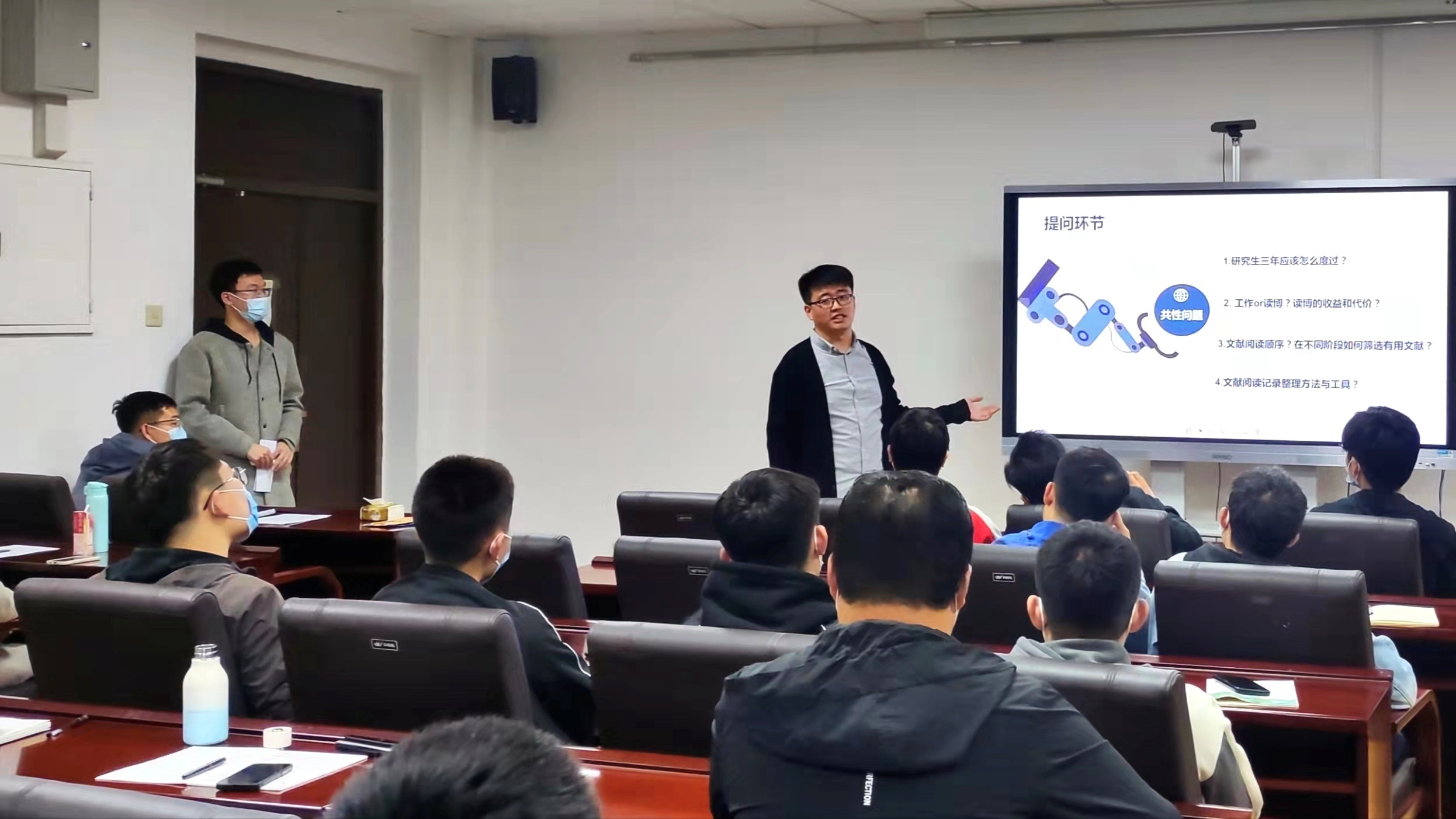 陈泽仁根据自己的科研经历,就研究生阶段可获得的科研成果进行了分类讲解,在总体上阐述各类文章的写作思路及方法,分享了常用的文献检索网站并介绍各网站使用方法。为帮助同学们理清思路,陈泽仁着重介绍了文章写作前的构思过程和技巧,就如何找到合适的研究切入点进行详细分析,并以研究型SCI论文为例,逐步分解文章,分析写作架构,让同学们明晰了摘要、介绍、材料与方法、结果与讨论、总结、致谢六大部分的写作内容与注意事项。陈泽仁还结合亲身实践经历进行经验分享,既具专业性又不乏趣味性。分享结束后,研究生团委科技创新部就之前收集的研究生科研及生活上的共性问题进行提问,现场同学也依据现阶段自身存在的疑惑提出问题,陈泽仁一一回答并进行补充。