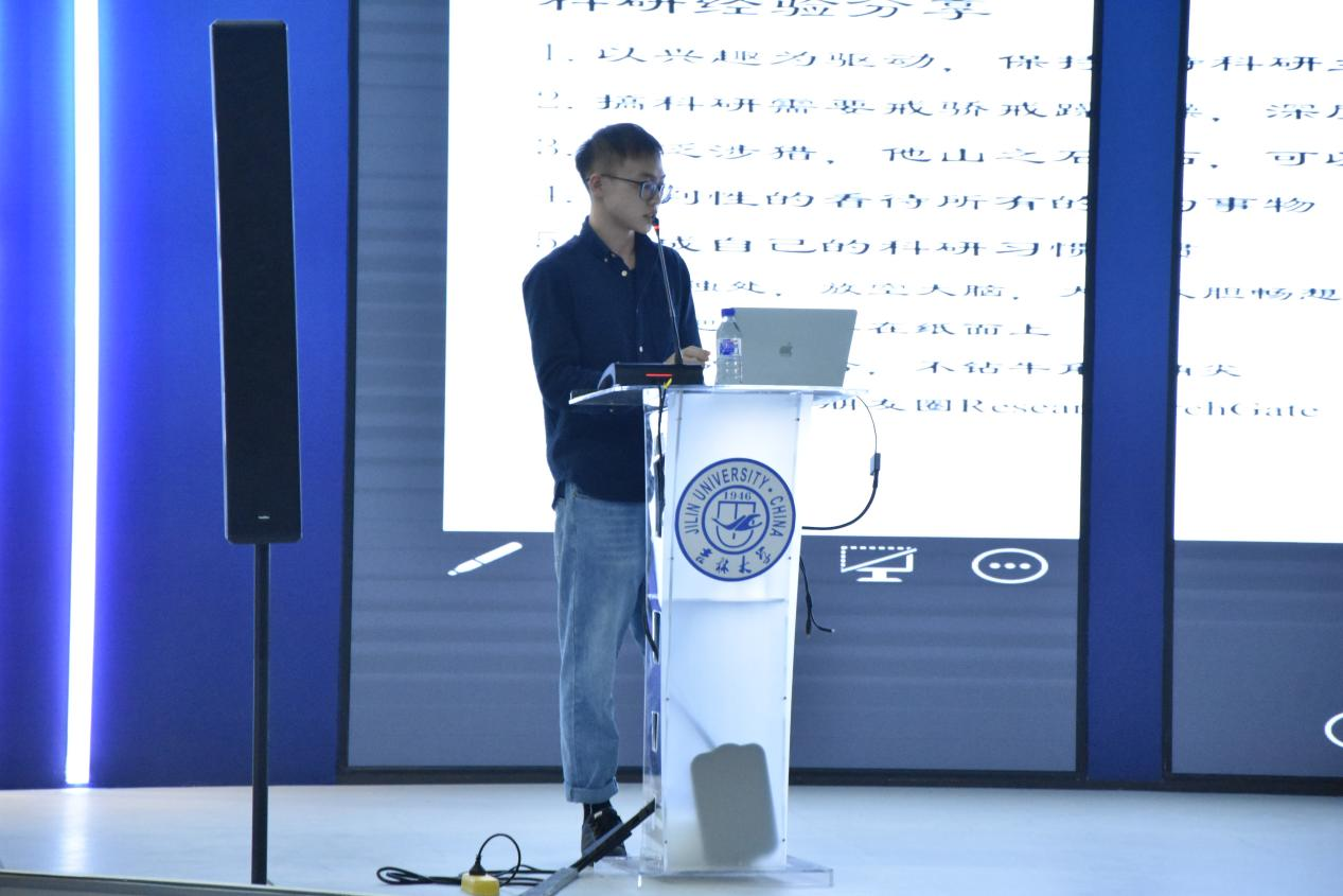 博士研究生代表夏操分享了自己从本科阶段开始,在开展“MEMS谐振式传感器”的科研生活中所总结的科研经验及科研技巧,并对想在本科期间参与科研的同学提出了“以兴趣为驱动”、“他山之石,可以攻玉”等许多宝贵建议。中日联合培养博士研究生代表宋杰以《研究室的一周》为题,为大家介绍了自己在日本东北大学进行学术交流开展“微纳机电系统”相关研究期间的所闻所见,呼吁在场同学抓住各种学术交流机会,积极参与科研实践活动,不断拓展学术视野。