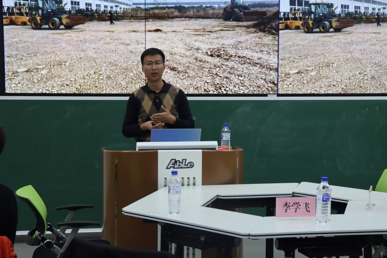 首先,李学飞老师以“人工操作装载机”为例,列举了该项工作重复性、危险性等弊端,由此引出了活动主题——工程车辆无人作业技术。他强调,工程机械在资源开采、工业生产、建设施工和抢险救灾等方面,一直发挥着重要作用。随着全球科技的发展和人工智能技术的普及,工程机械技术创新已经成为行业发展的共识,工程机械无人化的重要性愈发明显。接下来,他详细介绍了无人化工程车辆的总体设计方案以及它所需要达到的功能和要求,针对在设计过程中的难点,包括物料识别、铲掘难易程度判断、自主铲装控制、路径规划以及跟踪控制等,全面介绍了工程车辆无人作业技术。活动最后,师生进行现场互动,李学飞老师对同学们的问题耐心地讲解,解决了困惑,开阔了员工的眼界。