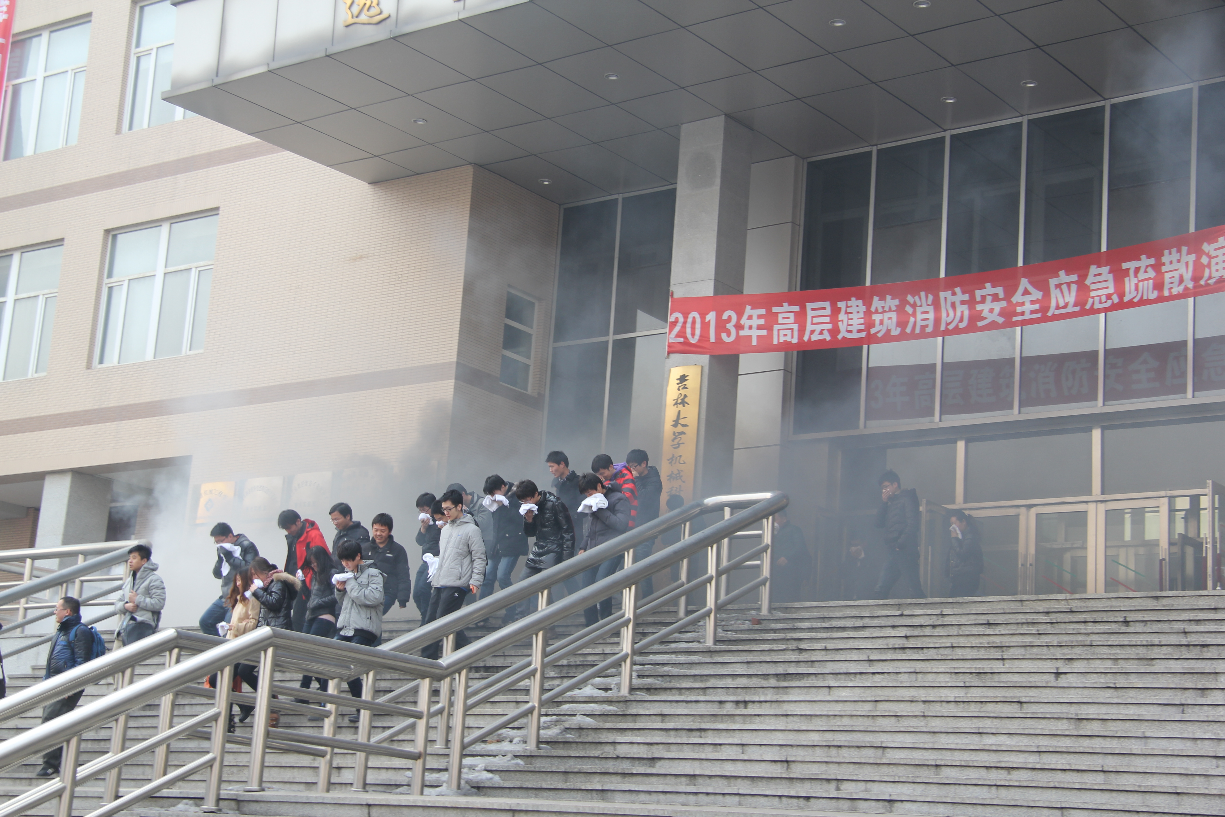 3月15日下午2:00,yl23455永利部分教师及机关工作人员在吉大南岭校区逸夫机械材料馆参加了长春市消防支队组织的消防应急疏散演练活动。