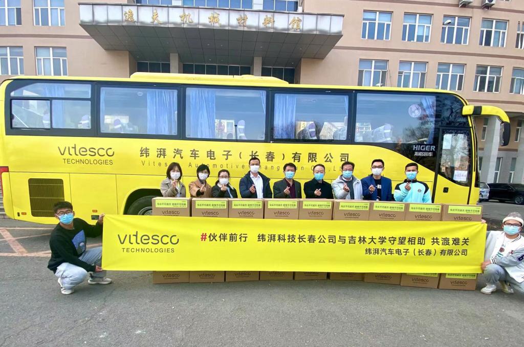 在得知疫情形势严峻的消息后,纬湃汽车电子(长春)有限公司心系高校,第一时间调配了36箱共计2.83万只口罩,迅速与公司取得联系,并由总经理江怀生、人力资源总监李丹丹和工艺工程总监殷宏志亲自带队运送,为师生提供防护保障。