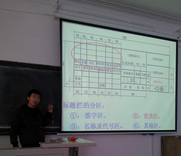 2013年4月10日上午9:00,工程与计算机图形学教研室在南岭校区第二教学楼314教室举办了由侯磊老师主讲的关于学习最新颁布的国家标准《技术制图》和《机械制图》的讲座活动。教研室全体教师参加了本次学习活动。