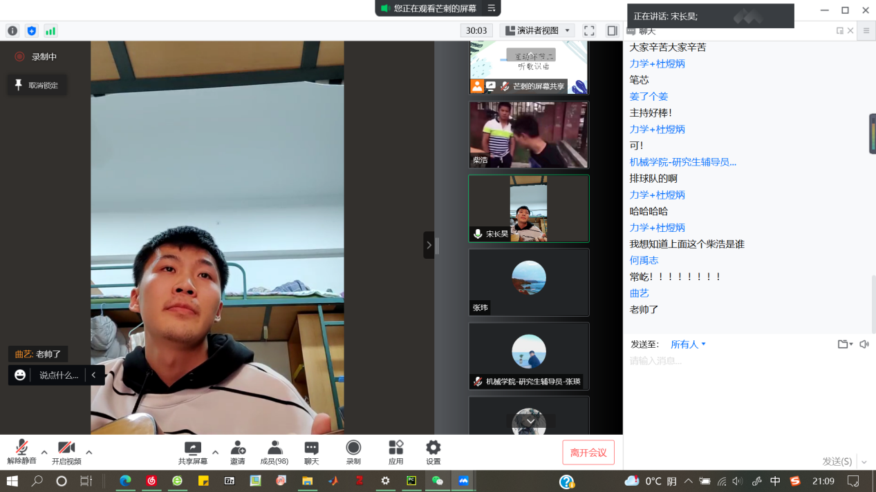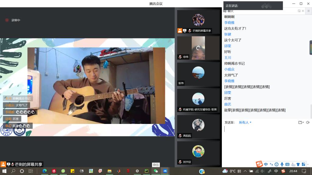 为丰富疫情封闭管理下的课余文化生活,营造轻松愉悦的寝室氛围,坚定同学们努力前行共克时艰的决心,2022年3月29日晚,yl23455永利通过线上形式举办了“疫路歌声”K歌分享会。K歌分享会通过个人表演、观众互动、合唱、投票等环节评选出6名优秀选手,由研究生宫如鑫主持,研究生辅导员曲艺、张瑛及百余名观众一同观看。