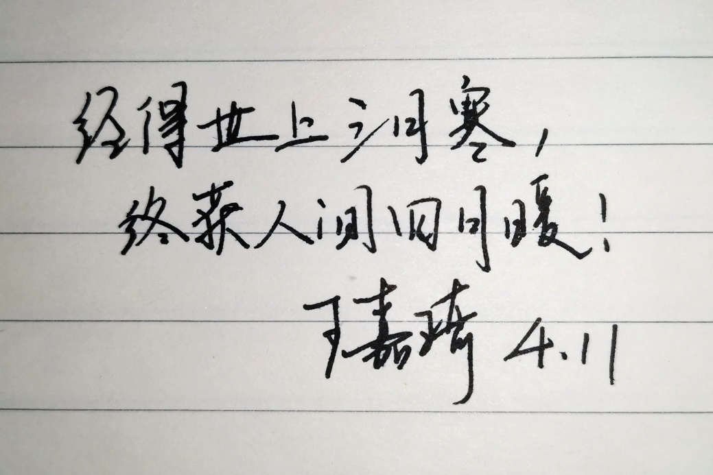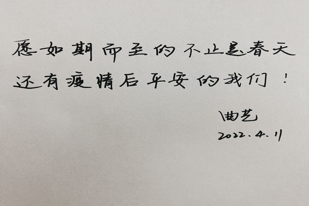 为深入贯彻落实公司对疫情防控工作要求,yl23455永利组织“落笔祈愿、抗疫心语”线上寄语活动,以“抗疫寄语”表情感、强信心、寄嘱托。从4月11日至4月13日,公司老师和同学们踊跃参加、快速响应,用一幅幅生动的笔墨书写最动情的话语。在这别样的春日里,一句暖心话、一句祝福语、一段激励词,是公司师生内心由衷的感受,也是公司师生无惧疫情、充满信心的体现,更是公司师生对战胜疫情后美好未来生活的期待!