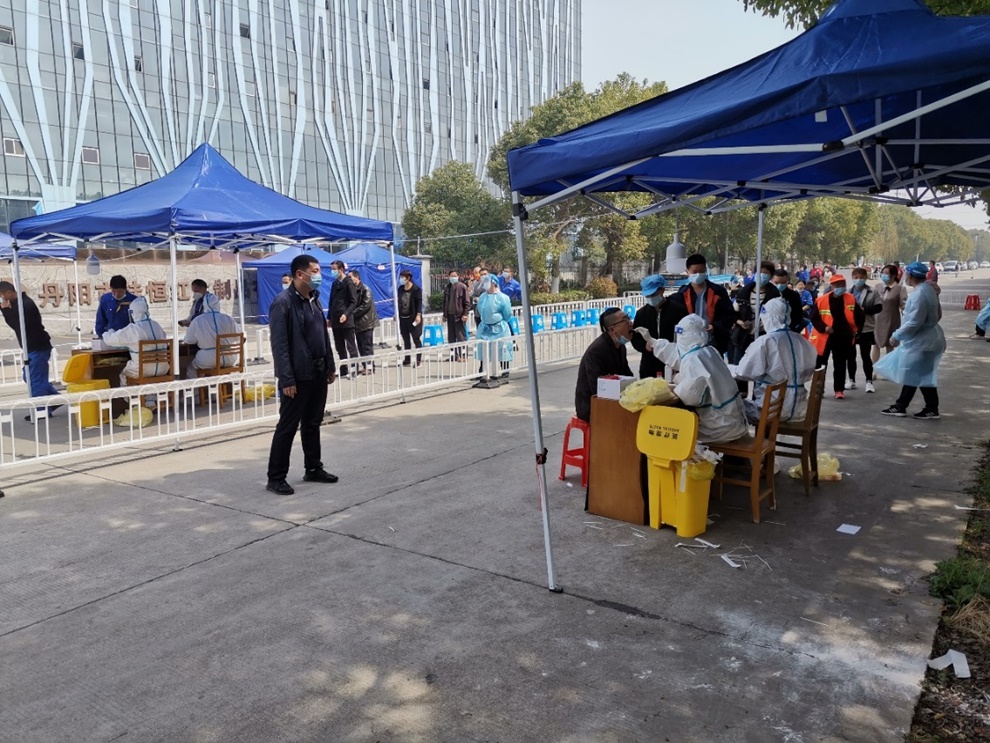 袁哲老师在江苏省丹阳市访仙镇挂职担任党委副书记,分别在访仙镇杨成村工业园区采样点、镇政府采样点及独山村七峰湖采样点组织并参加了多次核酸检测工作,同时多次下沉到乡镇超市和卡口等重要网点进行检查督导,尽心尽力为丹阳市疫情防控贡献着自己的力量。