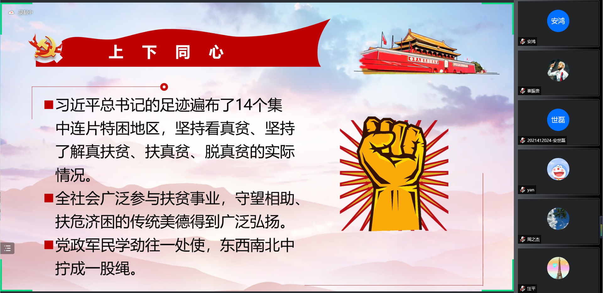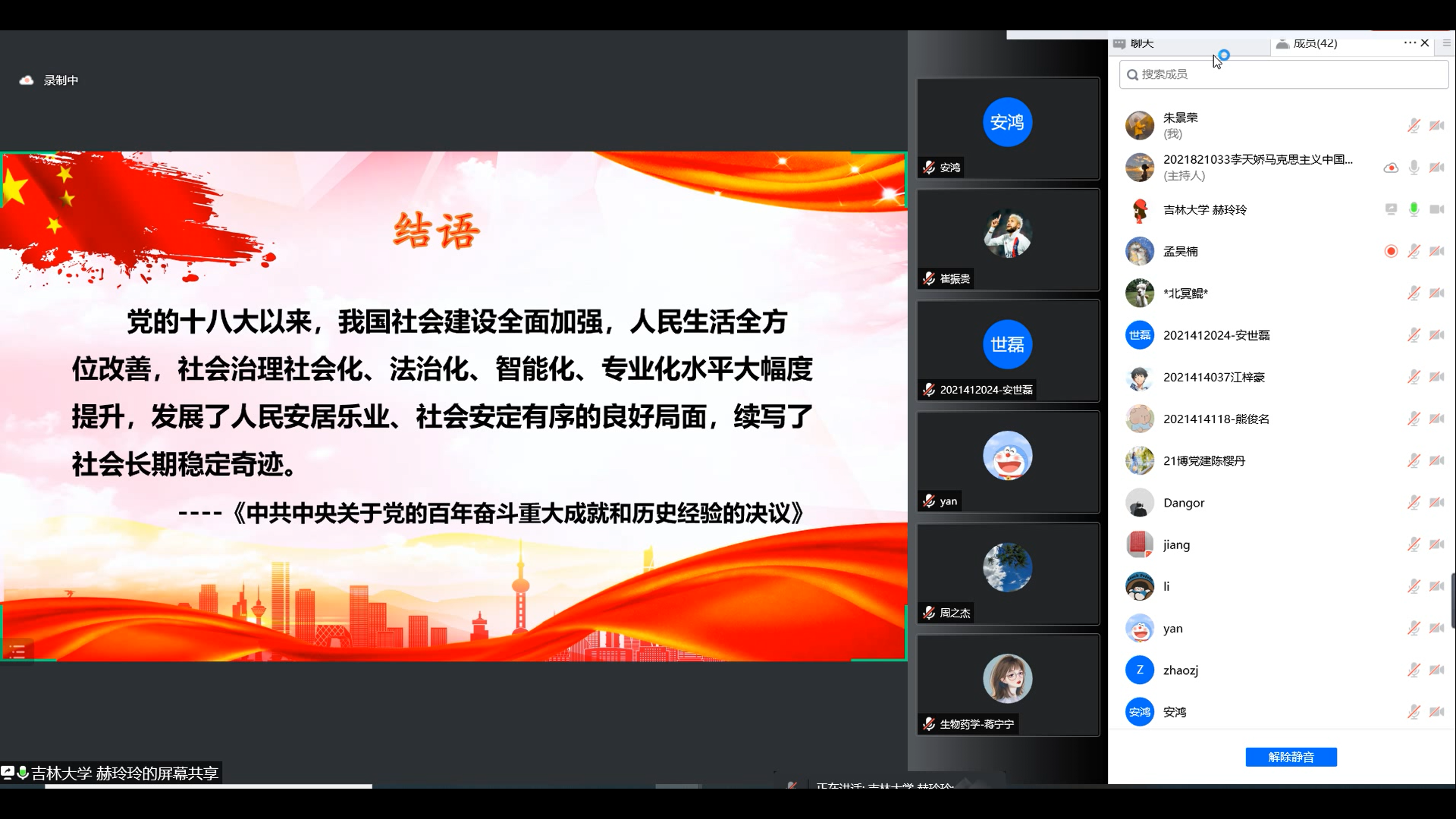 为迎接党的二十大胜利召开,激发公司研究生锐意进取、勇毅前行的精神,2022年4月28日晚,yl23455永利党委研究生工作部开展了“喜看稻菽千重浪——新时代的历史性成就和历史性变革”yl23455永利博士生讲师团线上宣讲系列活动。活动邀请到yl23455永利马克思主义公司21级博士研究生赫玲玲,通过线上形式与广大研究生们交流分享,南岭校区四公寓师生临时党支部组织全体党员在线观看。