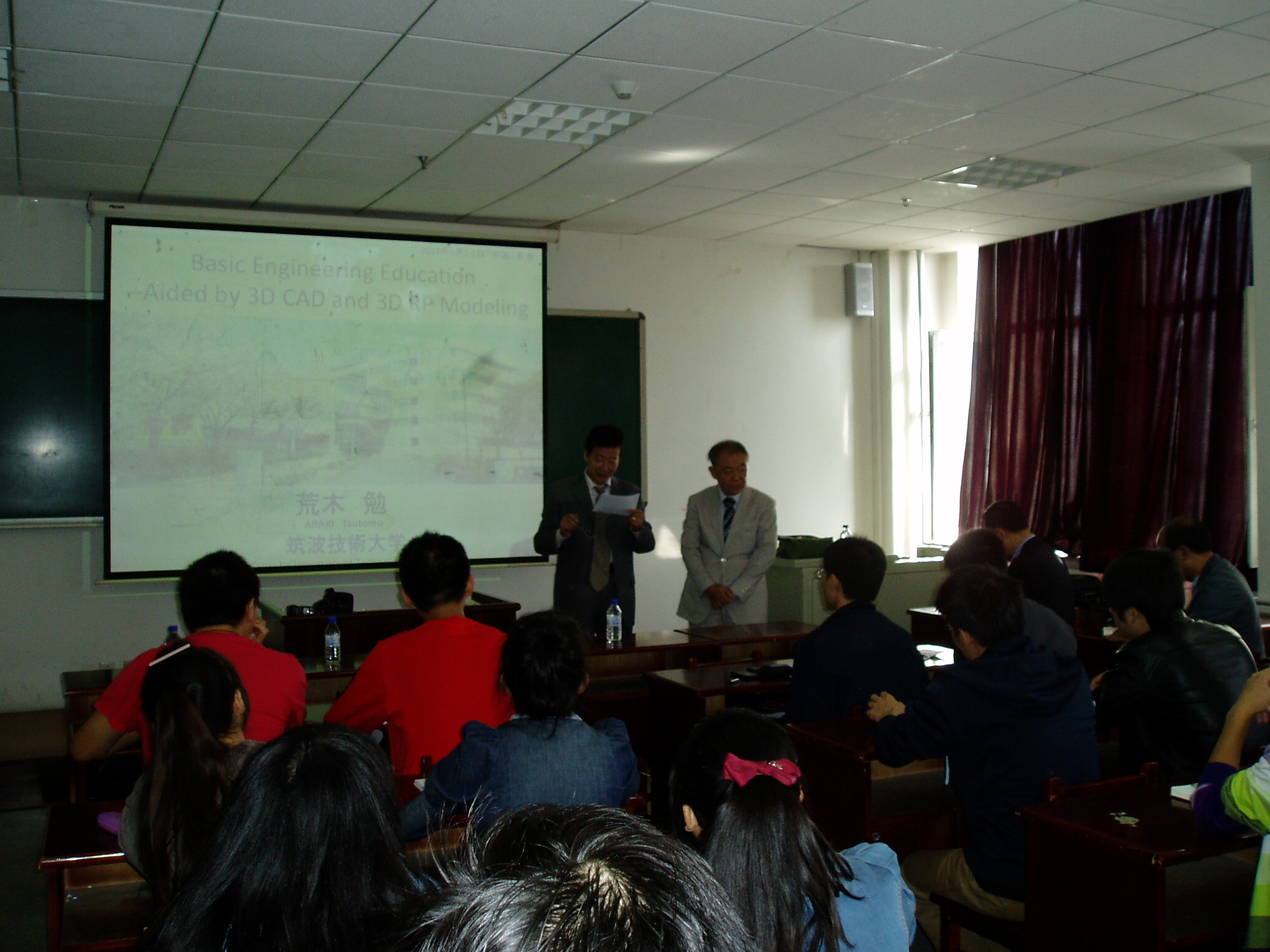 荒木教授在报告中通过大量教学研究实例,以“图示表达----设计理念----加工工艺----开拓创新”为主线,结合应用3D CAD和快速成型技术手段,介绍了其所从事的机械基础系列课程的各个环节,为机械工程大类本科生基础设计、工艺能力培养和创新兴趣诱导、国际视野熏陶提供了丰富的素材,开阔了在场师生的工程设计与制造工艺理念。荒木先生还与在座师生进行了现场交流。此次报告为公司基础课教师改进教学方法,细化教学环节,深入教学研究提供了有益借鉴。
