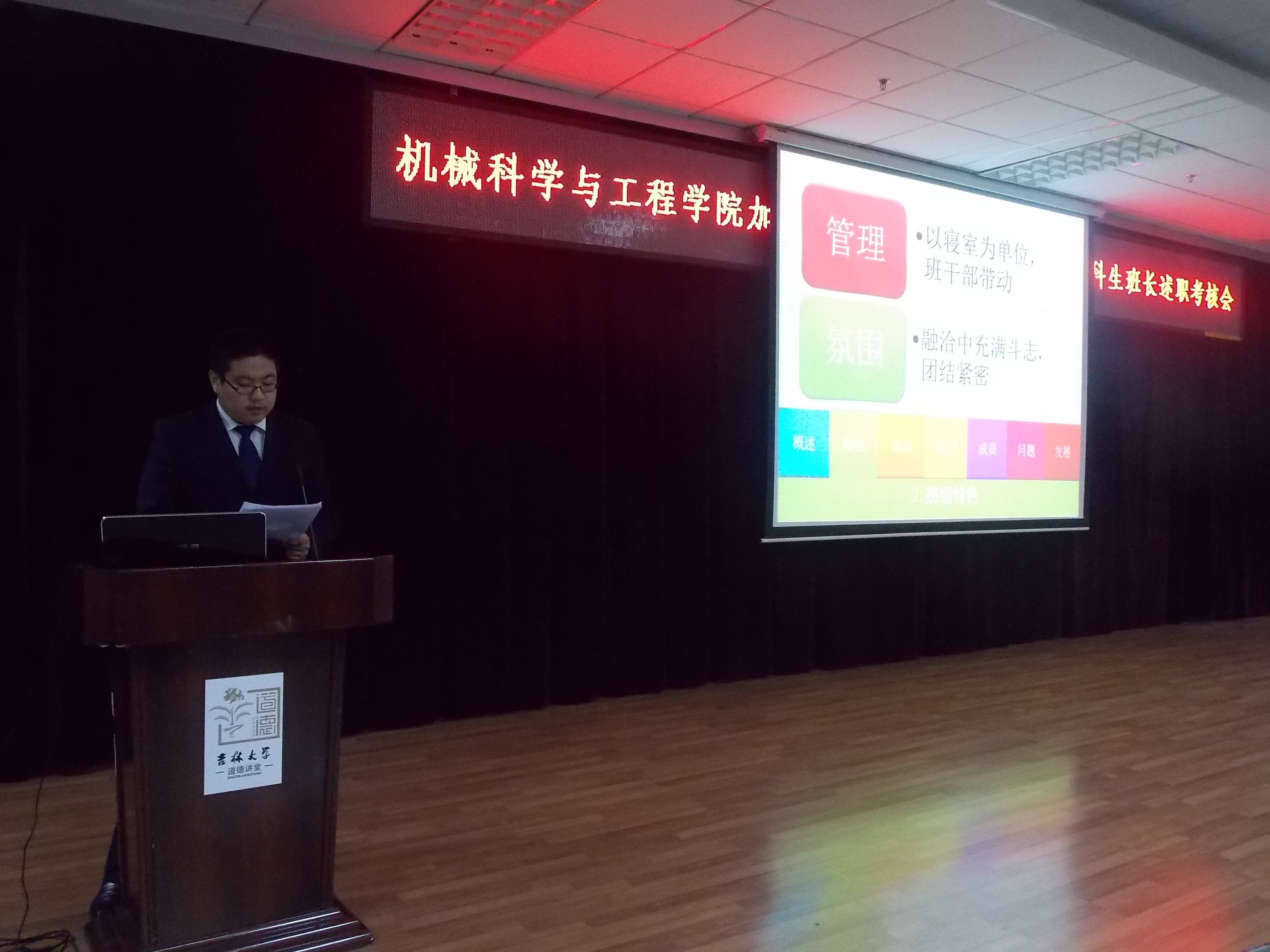 参加述职的班长就本班学习情况、活动组织参与情况、班级优势特色以及班长自身作用发挥情况等方面进行了述职陈述。最后,副书记郑福胜对述职情况进行了点评,针对当前公司本科生学风建设中存在的主要问题,阐释了加强学风建设的重要性、必要性和紧迫性,提出了把握一个原则、打好三个基础、理顺三种关系、抓好四项重点工作的班长工作准则,并要求班长发扬民主作风,明确职责定位,提高工作热情与执行能力。同时,向班长说明了公司加强学风建设的举措和办法,要求班长统一思想,做好班级建设,引领班级工作全面发展。