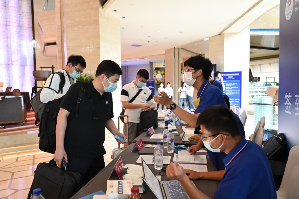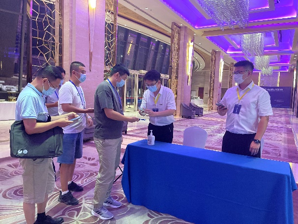 大会召开前夕,会务组工作人员多次到会议现场,实地考察,全方位做好大会准备工作;会议筹备期间,员工志愿者一对一联系参会嘉宾,核对并收集防疫信息,为每位参会者赋个人专属的疫情防控识别码,保证每位参会者顺利安全参会。8月17日,工作人员及志愿者正式开始接待,现场引导报到、发放资料、调试设备,井然有序。接待人员热情洋溢,参会嘉宾喜赴盛会!