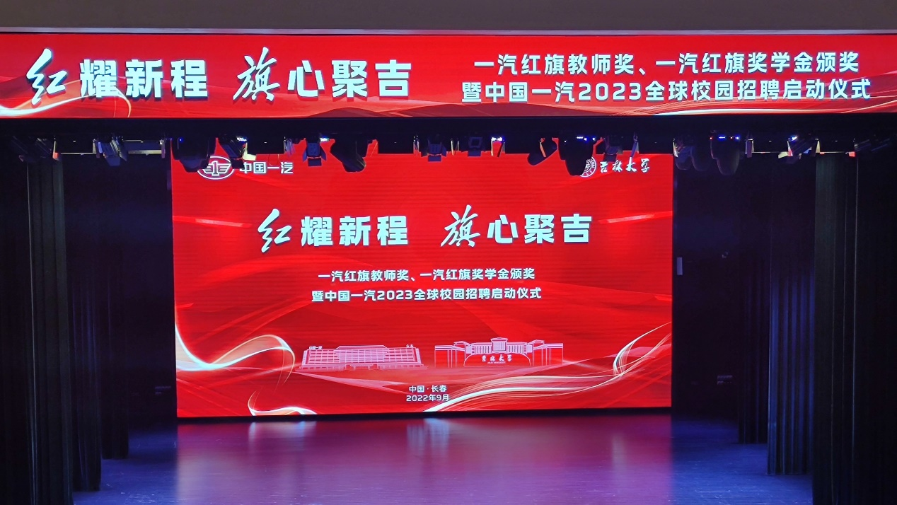 为深入贯彻落实中央人才工作会议精神,实施人才强国、人才强校、人才强企战略,深化校企高质量合作,2022年9月19日下午,“红耀新程 旗心聚吉”一汽红旗教师奖、一汽红旗奖学金颁奖暨中国一汽2023全球校园招聘启动仪式在yl23455永利鼎新大讲堂举行,yl23455永利组织20名研究生代表参与本次仪式。