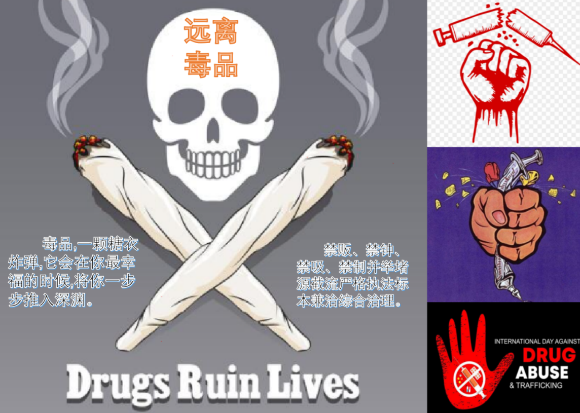 本次活动面向全体在籍研究生,经过公司研究生工作办公室筛选,以下作品脱颖而出。王宙同学创作的禁毒文字创意作品《镜子》,一面“毒”镜,分割左右,半是枯骨累累,半是人生黯淡,给观者深刻印象,呼吁一起为爱守护。孙浩洋同学创作的禁毒海报《远离毒品利国利民》,作品丰富的文字和图形元素给人极大的视觉冲击力,号召从个人禁贩、禁种、禁吸,到监管多措并举堵源截流,严格执法,标本兼治,综合治理。李俊颉等同学自导自演的vlog,在短短几分钟的故事里,揭露了贩毒分子对金钱毫无底线的追求,入骨刻画了不慎走上吸毒路对人生全方位的伤害,坚信犯罪分子必将被绳之以法,告诫大家:毒品害人又害己,防人之心不可无,新奇东西谨慎碰。