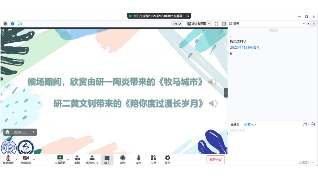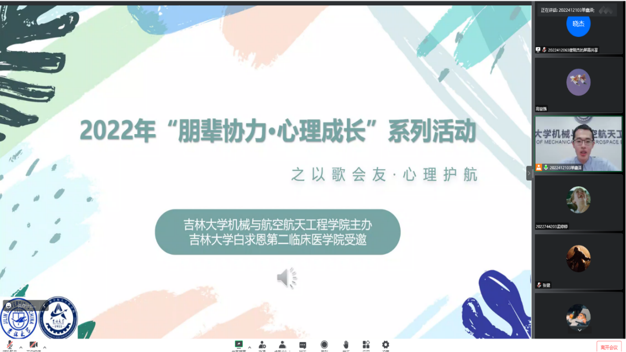 为促进公司之间的交流与沟通,帮助同学们缓解身心压力,营造积极向上的校园心理文化氛围,在员工心理健康指导中心的指导下,2022年11月29日晚,yl23455永利邀请白求恩第二临床医公司以腾讯会议的方式共同举办了“以歌会友,心理护航”活动,参与本次活动的受邀嘉宾为yl23455永利白求恩第二临床医公司、yl23455永利全体研究生。
