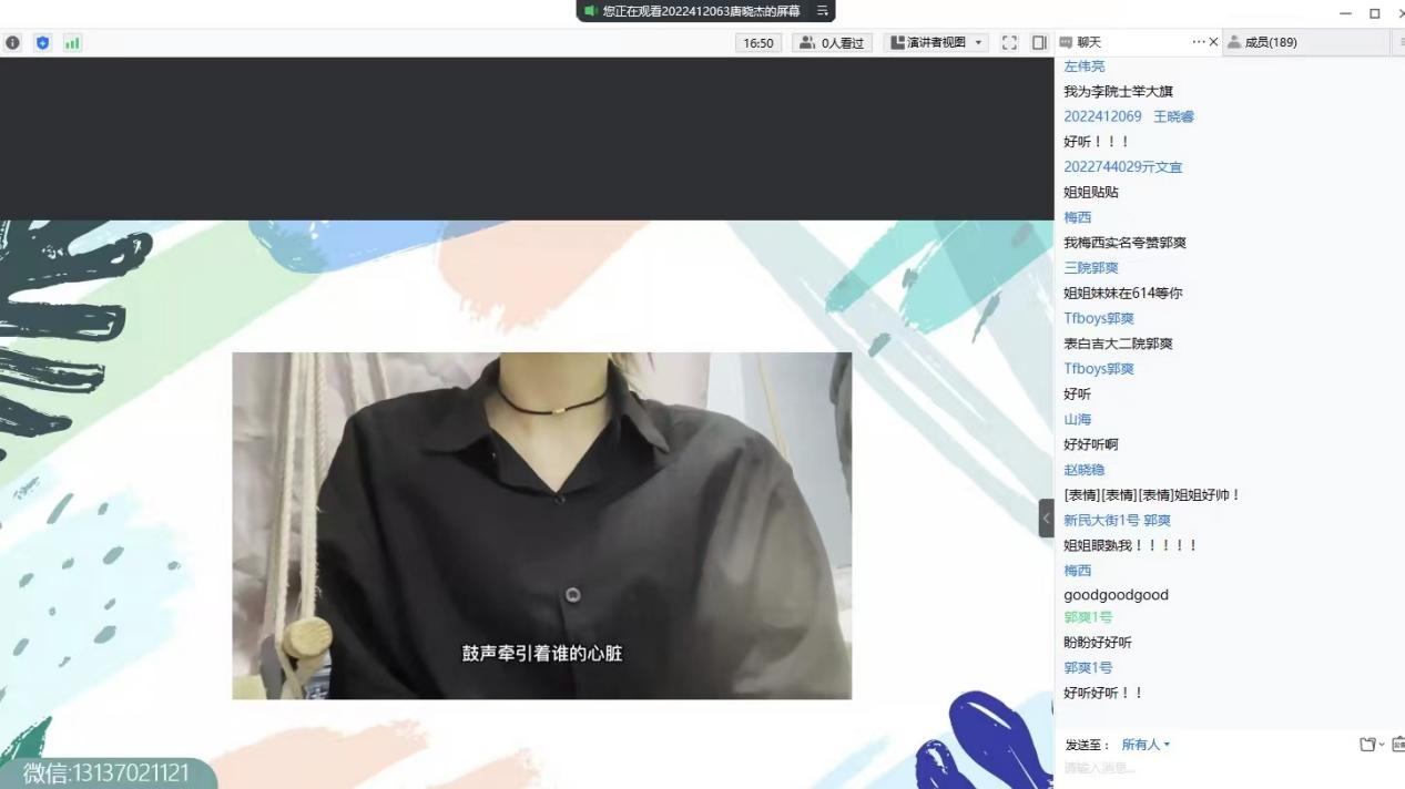 活动前期准备,在研究生辅导员张瑛的指导下,朋辈心理辅导员郭爽与组织部唐晓杰、单鑫泽等人积极开展了对同学们作品的征集与调整修改工作,最后拟定作品数量与表演内容,并与29日晚6点顺利开展。活动开始后,yl23455永利和白求恩第二临床医公司的十名员工通过视频录制的方式线上分享歌曲演唱,之后在主持人的带领下,同学们积极参与听歌识曲、歌词接龙等趣味活动,并对演唱选手进行投票,现场气氛热烈,充满着欢声笑语。活动结束前,主持人鼓励观众来表现自己唱歌的天赋,同学们积极响应,本次活动也在研究生辅导员张瑛老师悦耳的歌声下完美谢幕。同学们纷纷表示,此次活动为大家提供了倾诉心声与消解社交烦恼的好机会,也为两个公司的研究生们搭建了沟通与交流的有益平台,期待着以后有更多的机会参与到此类富有意义的心理活动中来。