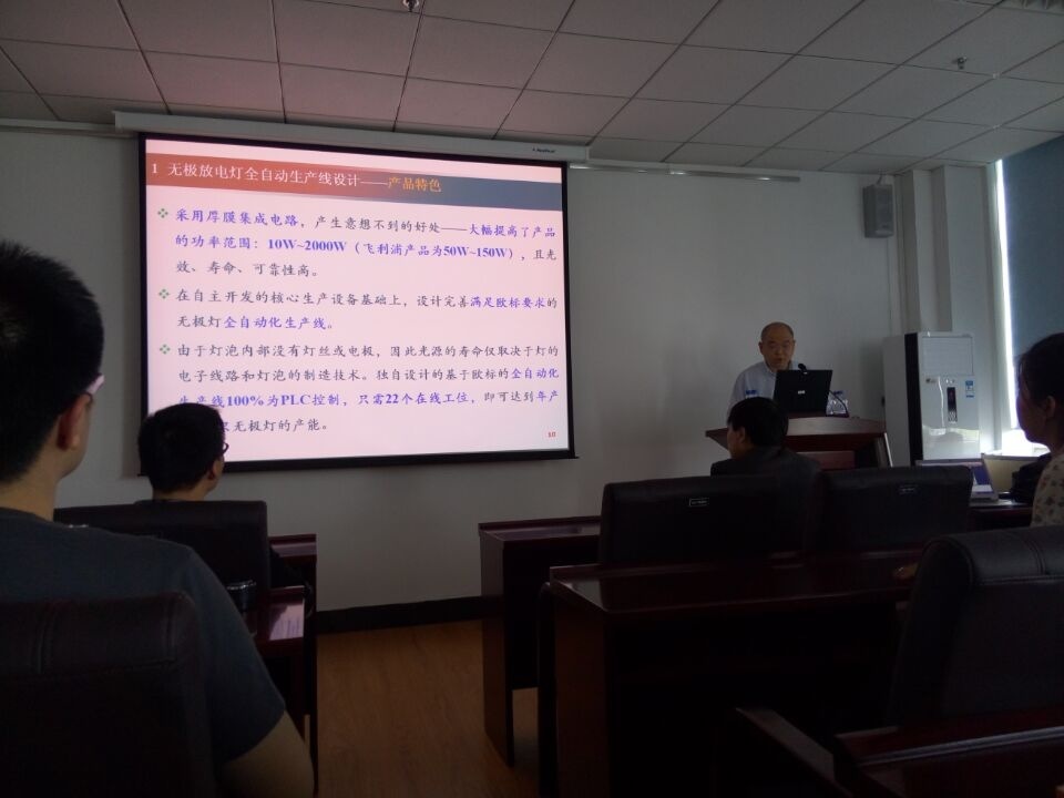 会上,李云博士针对目前国家大力提倡的新型无极放电灯和卷绕蓄电池产品成果转化及自主设计开发的全自动生产线进行了详细的介绍。此外,他还向在座师生介绍了如何通过引进荷兰RDM公司技术来联合开发中国制式潜艇,以及欧洲的核应用及发展现状。