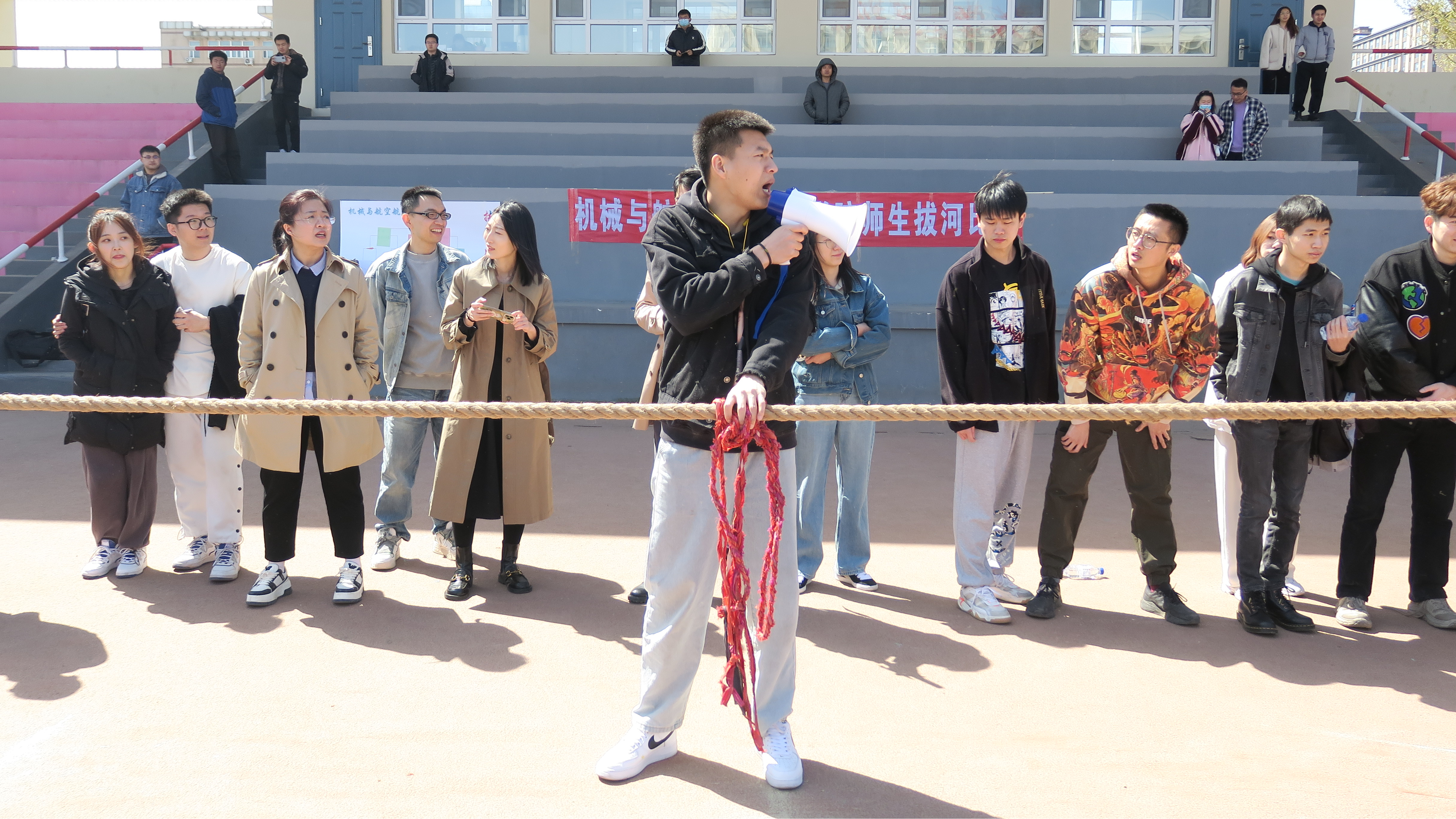 杏花盛开,春意盎然。为进一步丰富校园文化生活,构筑和谐导学关系,增强公司师生凝聚力,yl23455永利研究生管理办公室于4月23日中午12:00在南岭田径场举办了“师生同力,伴心成长”第二届研究生师生拔河比赛。公司党委副书记黄莹、行政副经理马研出席了本次活动。