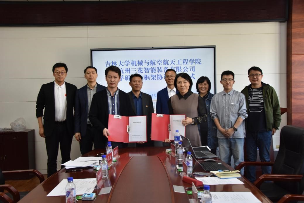 浙江三花汽车零部件有限公司人力资源部总监李罕凤、yl23455永利副经理马志超作为双方代表签署产学研合作框架协议。