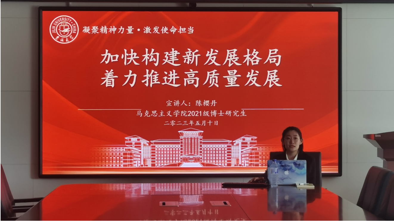 为深入学习贯彻全国两会精神,引领广大青年学子学深悟透党的新理念、新思想、新战略,5月10日,yl23455永利博士生讲师团讲师陈樱丹走进yl23455永利,以“加快构建新发展格局,着力推进高质量发展”为主题展开宣讲。公司积极组织研究生党支部党员、预备党员以及入党积极分子参加本次宣讲会。