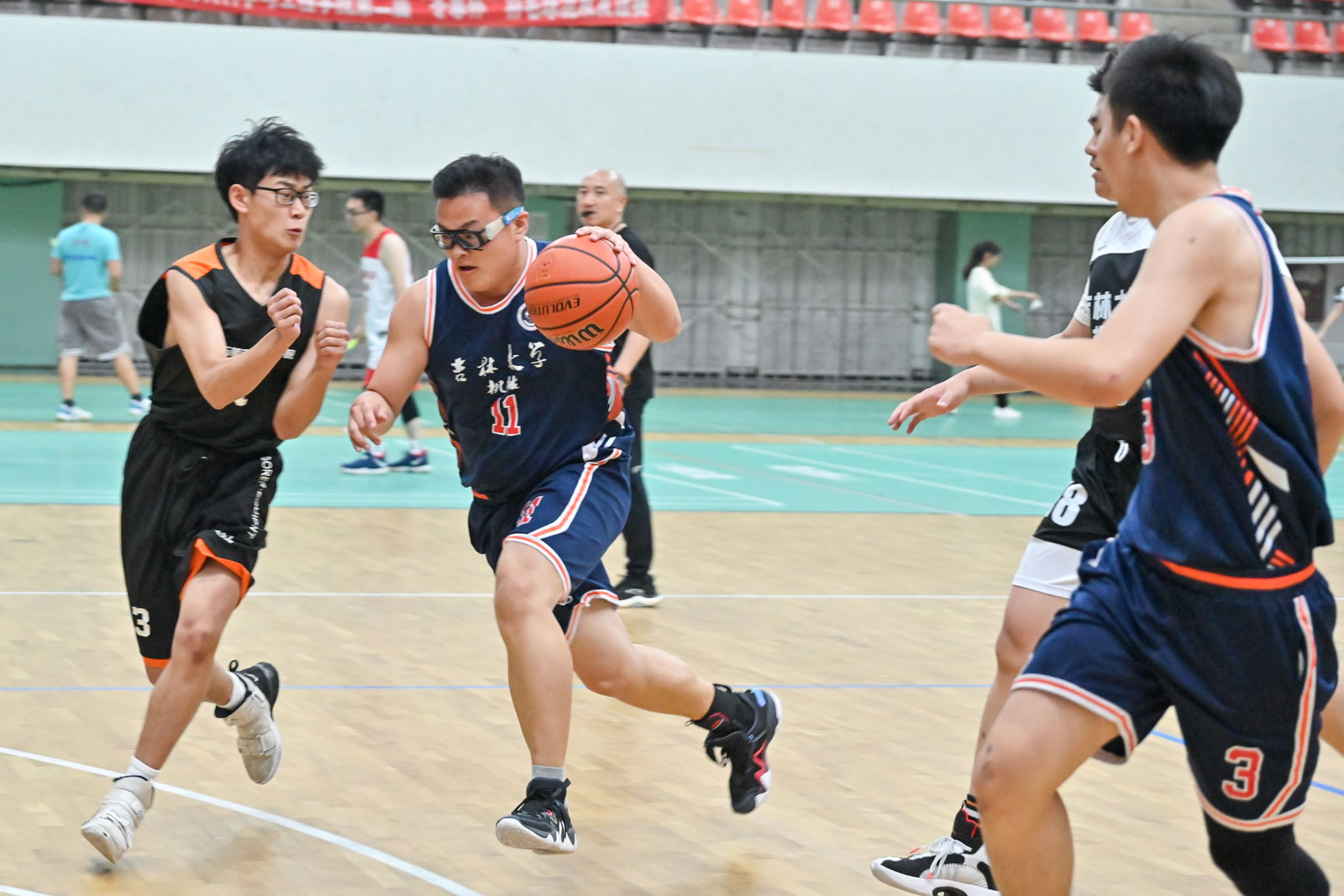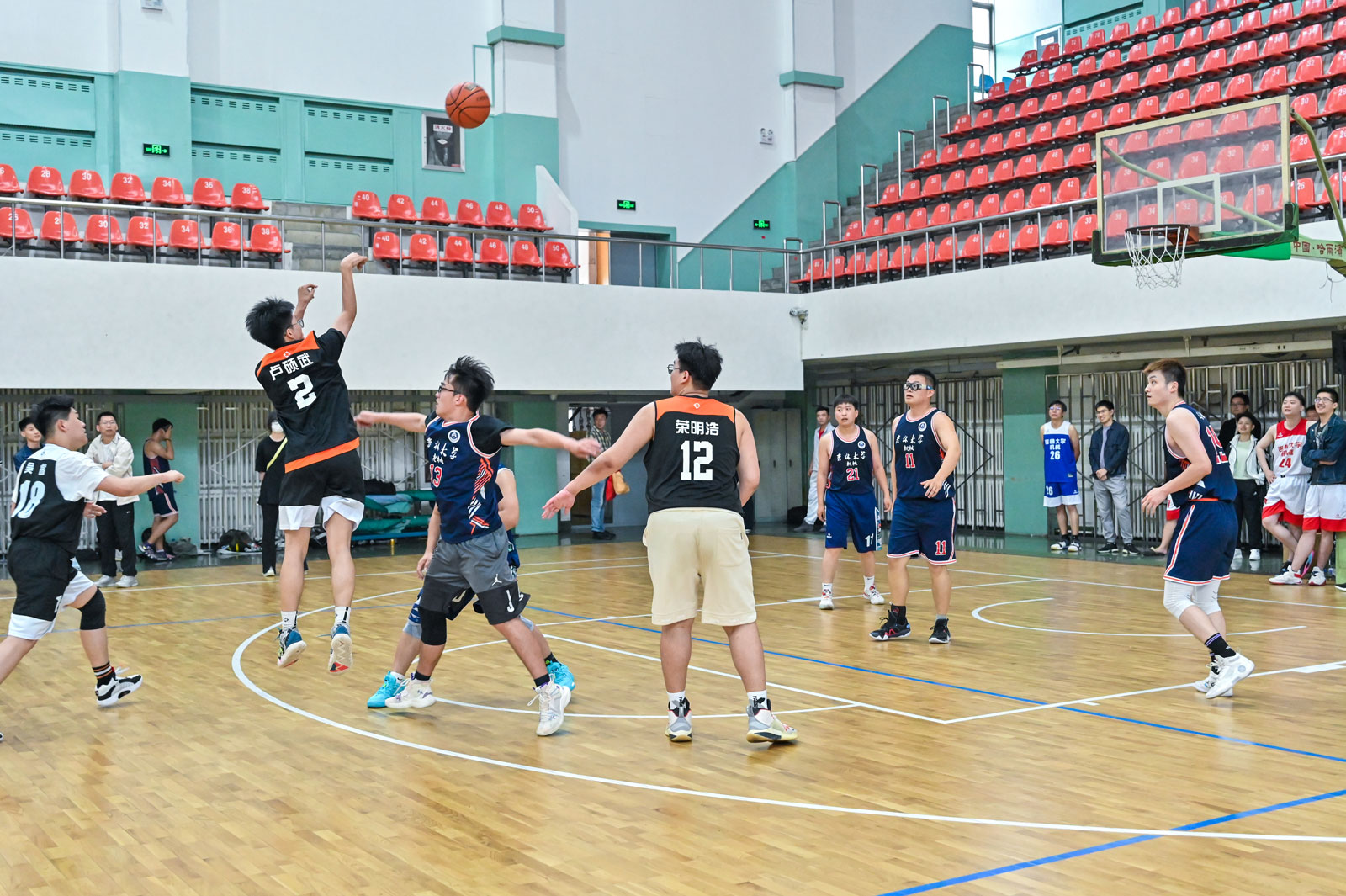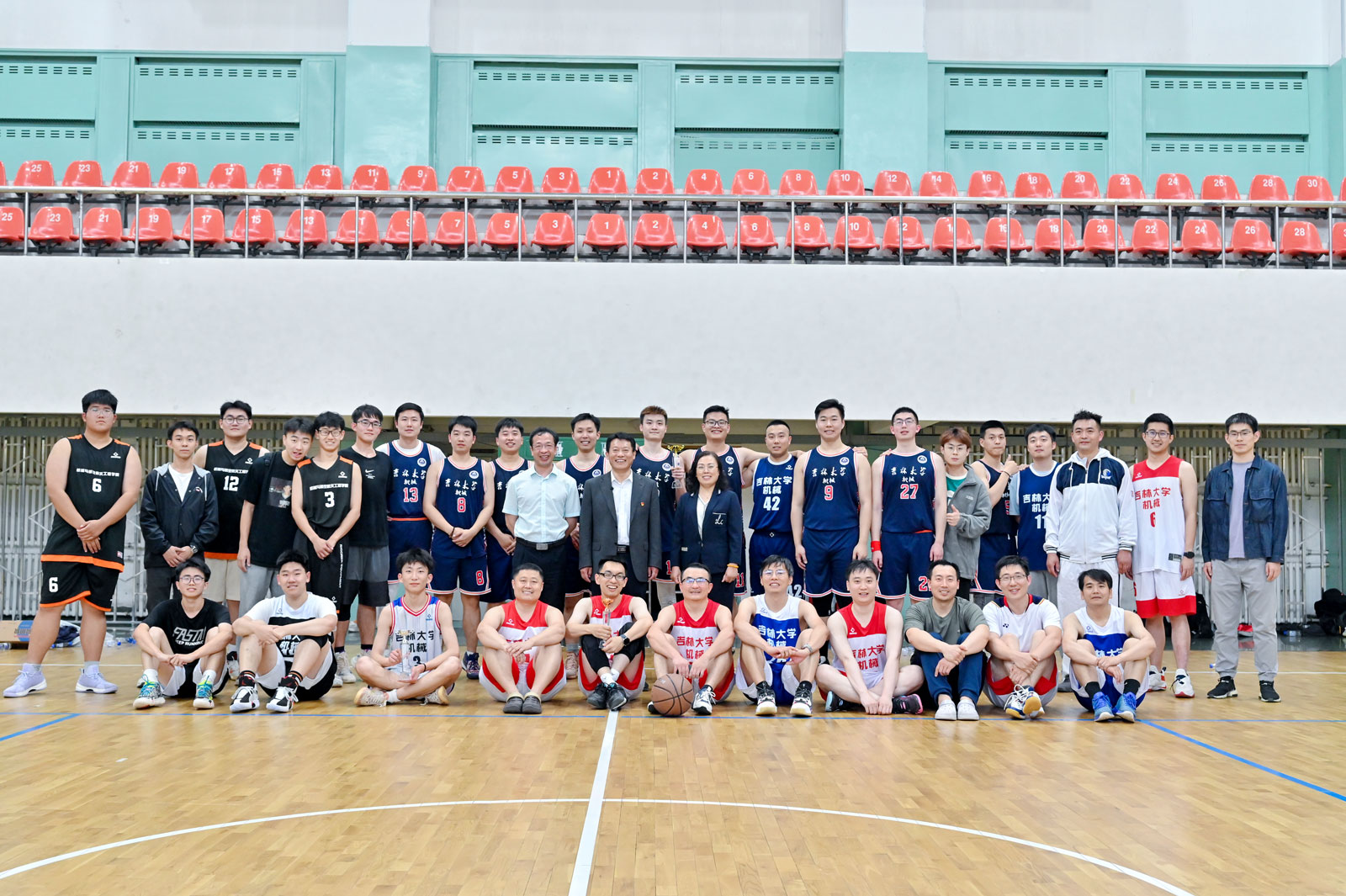 本次比赛共有10支队伍,其中教师2支、博士生1支、硕士生3支、本科生4支。比赛第一阶段采用分组循环赛制,第二阶段采用淘汰制。 为增加对抗性, 比赛引入特殊队员制度,排名小组第二的队伍将从排名较后的队伍中挑选合适的球员以增强团队实力。经过激烈紧张的小组赛和淘汰赛,6月12日中午,篮球赛迎来了尾声,教师组决赛和员工组决赛先后打响。比赛精彩场面应接不暇,拉拉队员的激情加油声、篮球的急促传接声、球鞋与地板的摩擦声、球迷的喝彩声在体育馆久久回荡,大家用蓬勃活力映衬了初夏的到来,也在毕业季为即将奔赴四海的毕业生们送上毕业祝福。