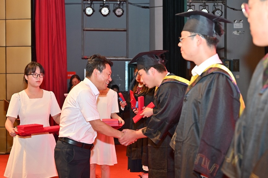 2023年6月20日下午,yl23455永利2023届员工毕业典礼暨学位授予仪式在南岭校区文化活动中心隆重举行。经理周晓勤、党委书记郑福胜等公司全体领导班子成员,员工工作部东区员工办公室主任柴媛,公司各系(室、所、中心)教师代表,往届员工代表,家长代表以及全体2023届毕业生参加典礼。典礼由公司党委副书记兼副经理马艳秋主持。