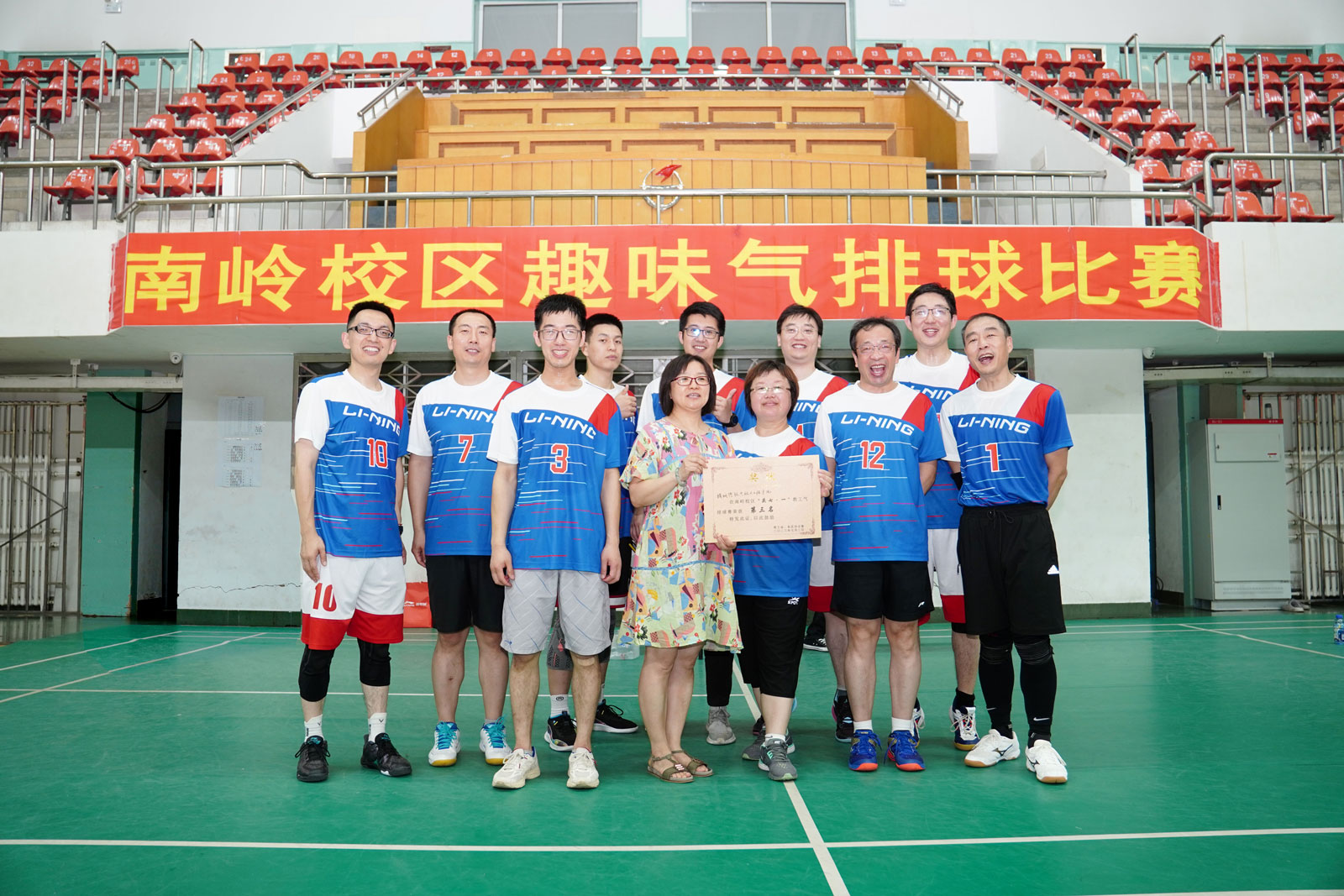 在7月2日举行的东区首届教职工趣味气排球赛上,灯光耀眼、热闹非凡,12支代表队师生欢聚一堂,共享体育盛会。yl23455永利代表队小组第一出线后,惜败体育部,屈居第三。