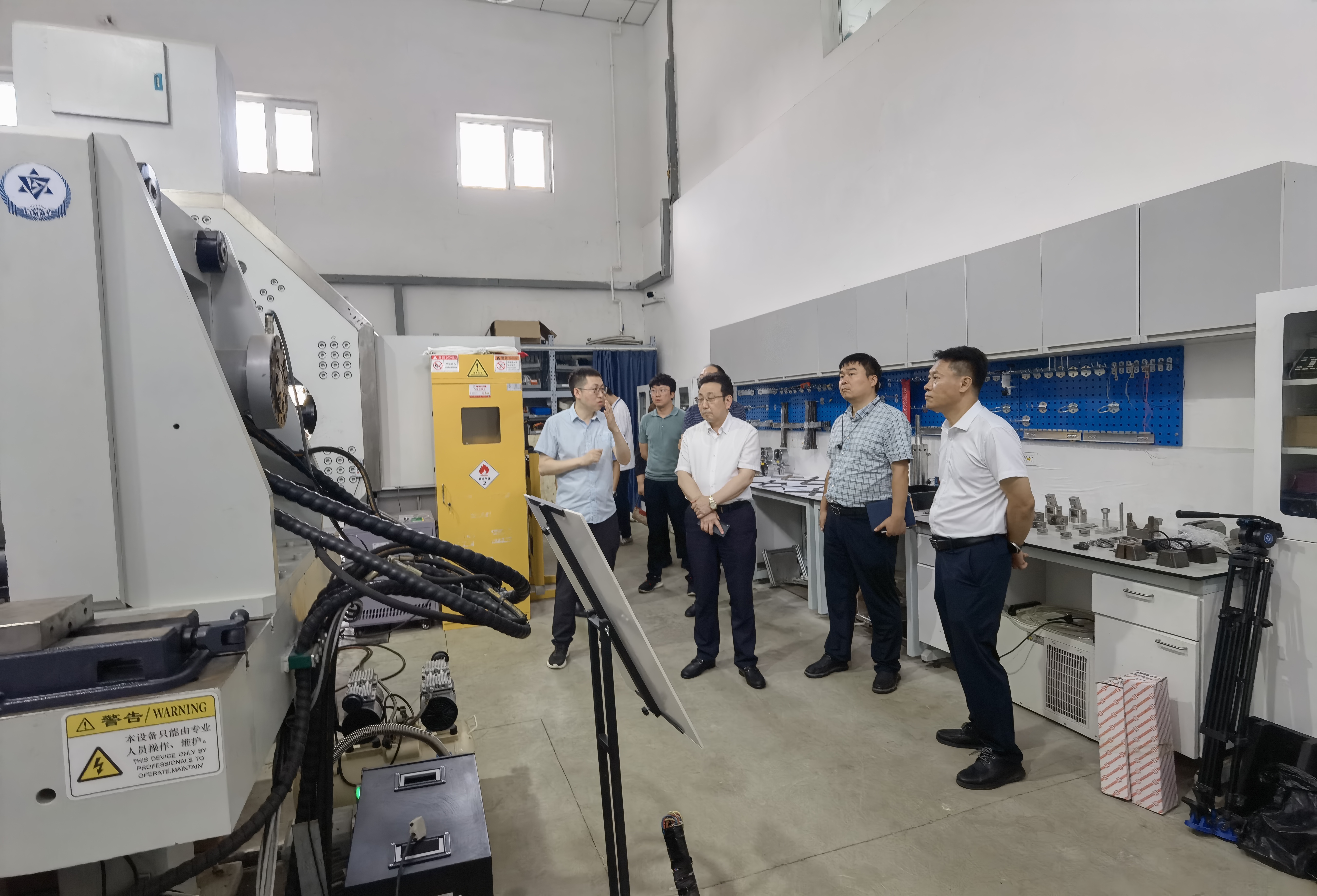马玉山院士一行实地参观了数控装备可靠性教育部重点实验室,对“材料力学性能原位测试技术与仪器”和“数控制造装备可靠性理论与技术”方向的研究成果给予了高度评价,对后续的相关研究内容给予指导建议。