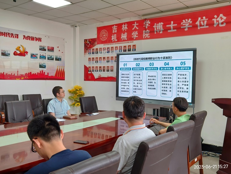 2023年6月21日下午,按照教育部《关于在教育系统开展师德集中学习教育的通知》和yl23455永利《关于在全校开展师德集中学习教育的通知》要求,为深入学习习近平新时代中国特色社会主义思想,贯彻习近平总书记关于教育的重要论述和指示批示精神,坚决落实师德师风第一标准,把握师德师风建设工作面临的新形势新要求,全员全方位全过程强化师德养成,压实师德师风建设责任,严肃查处师德违规行为,引导广大教师敬业立学、崇德尚美,营造风清气正的育人环境,机械制造及自动化系全体教师和实验室人员开展了师德集中学习教育活动。