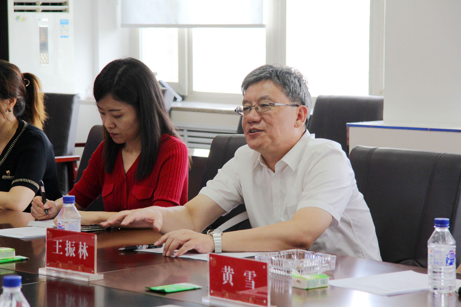 实验室参观后,王振林董事长一行在机械材料馆531会议室与公司班子成员进行了交流。员工王振林董事长回忆了与公司的渊源,介绍了研究所关于机械工业自动化方面的成果。双方探讨了产教融合人才培养与科研合作等事项。