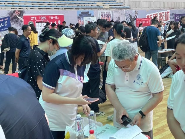 3月25日至26日,本科生招生宣传组联合天津员工会志愿者,分别赴天津市新华中学、天津市第二十中学、天津市第三中学3个咨询点,为天津市10余个公司的高三员工开展线下咨询活动,并针对考生及家长提出的问题进行了耐心细致的解答。