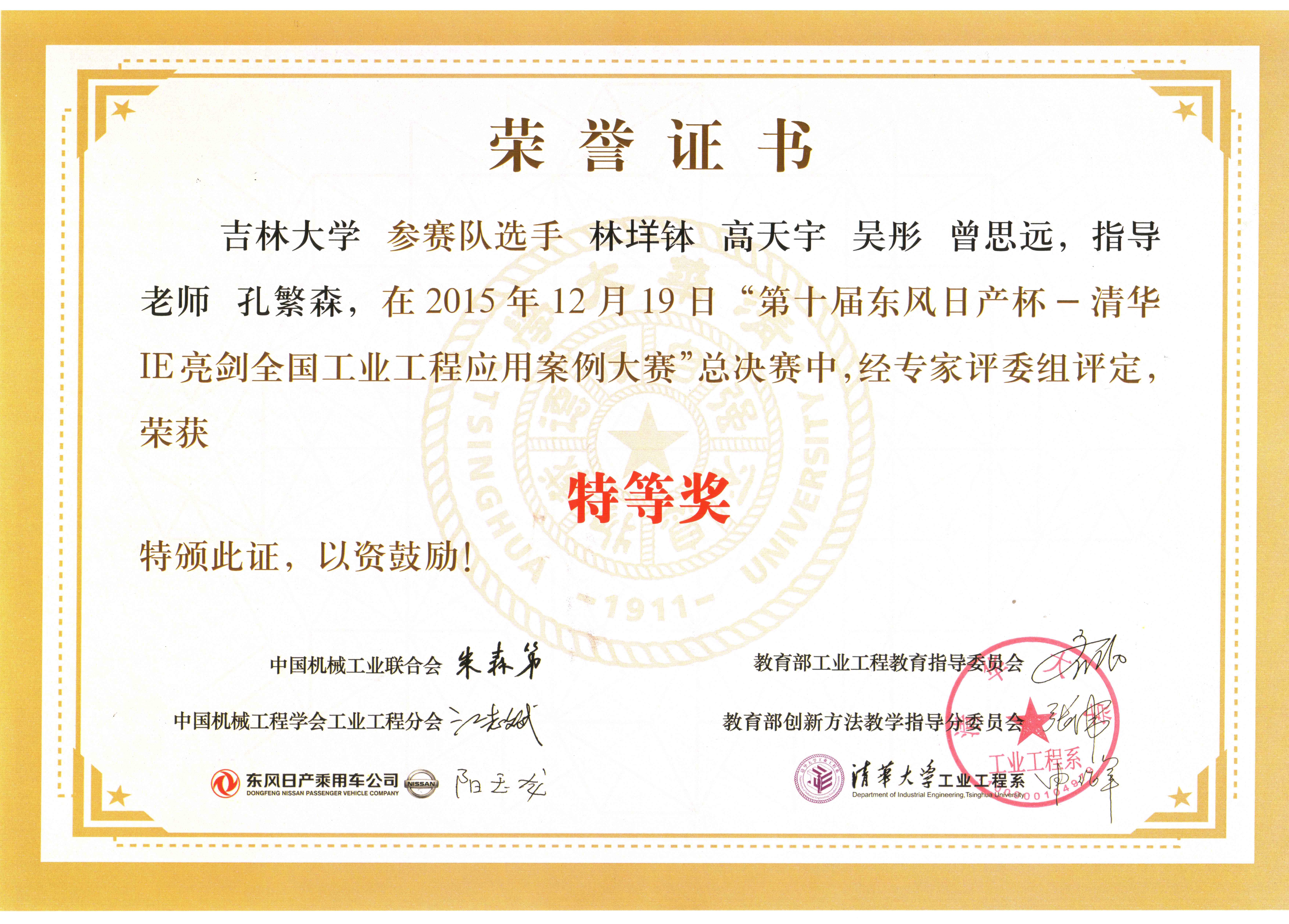 2015年12月19日,“第十届东风日产杯—清华IE亮剑全国工业工程应用案例大赛”在清华大学落下帷幕,公司工业工程代表队面对来自国内各行各业的强劲对手,奋力拼搏,最终力挫群雄,喜获特等奖。