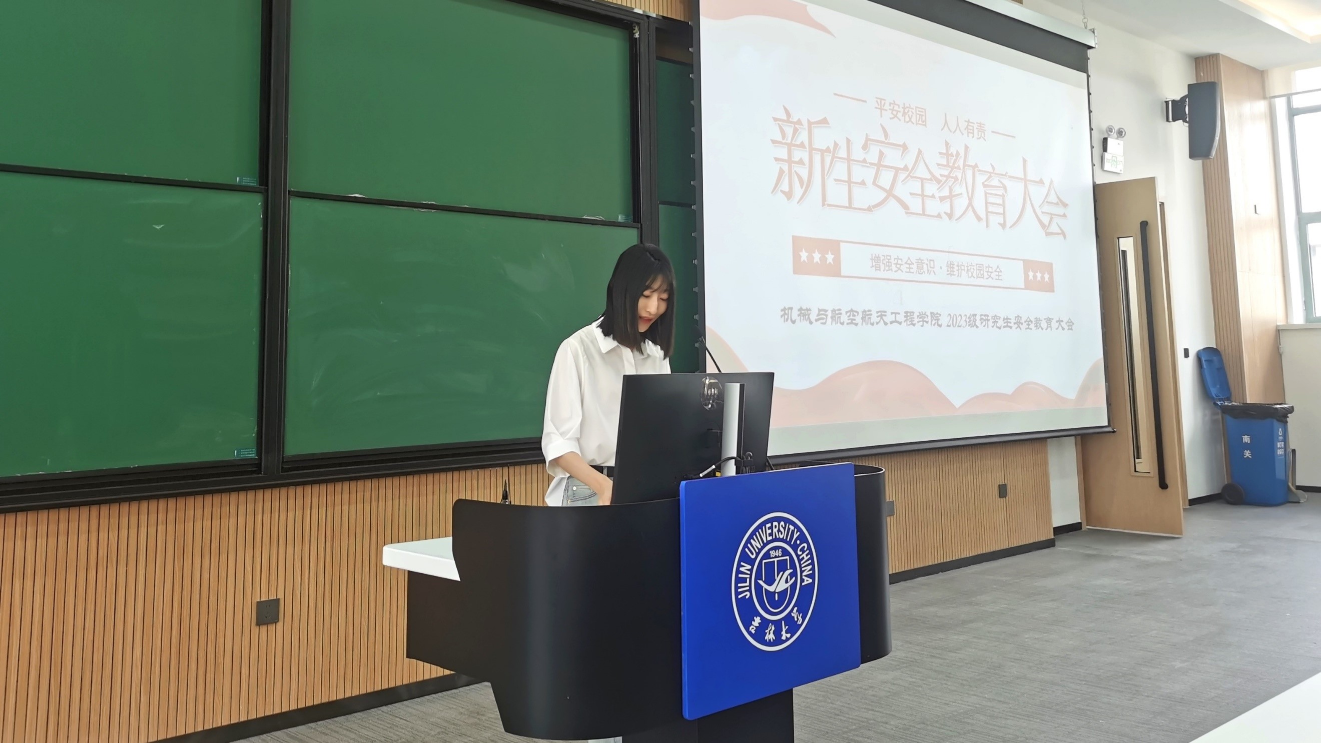 公司持续开展研究生新生入学教育,为切实增强员工的安全防范意识,保障员工的人身安全和财产安全,公司于2023年9月4日上午10:00在逸夫教育大楼A411召开研究生新生安全教育大会,研究生辅导员曲艺及全体2023级研究生参会。